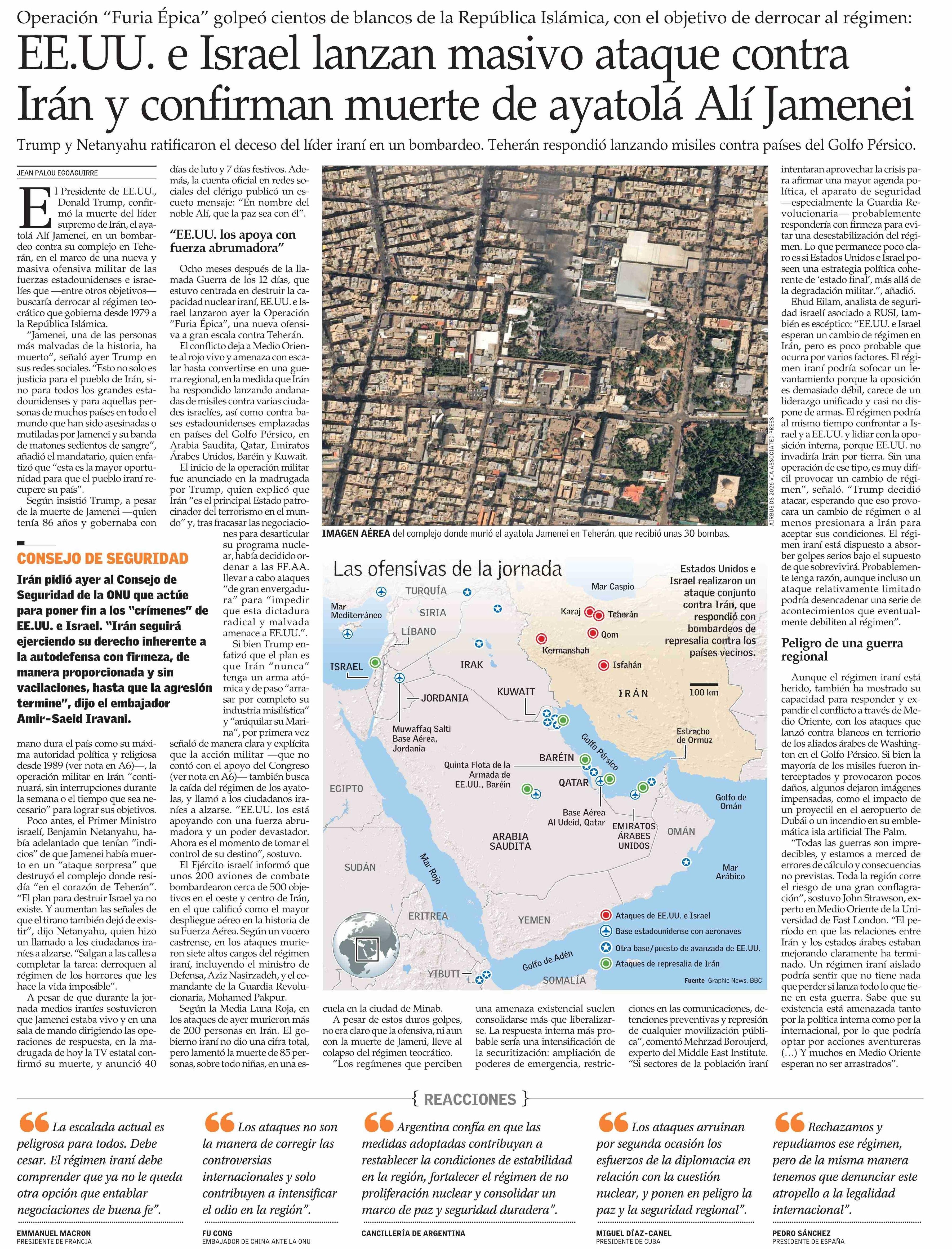 | Título: | EE.UU. e Israel lanzan masivo ataque contra Irán y confirman muerte de ayatolá Alí Jamenei |
