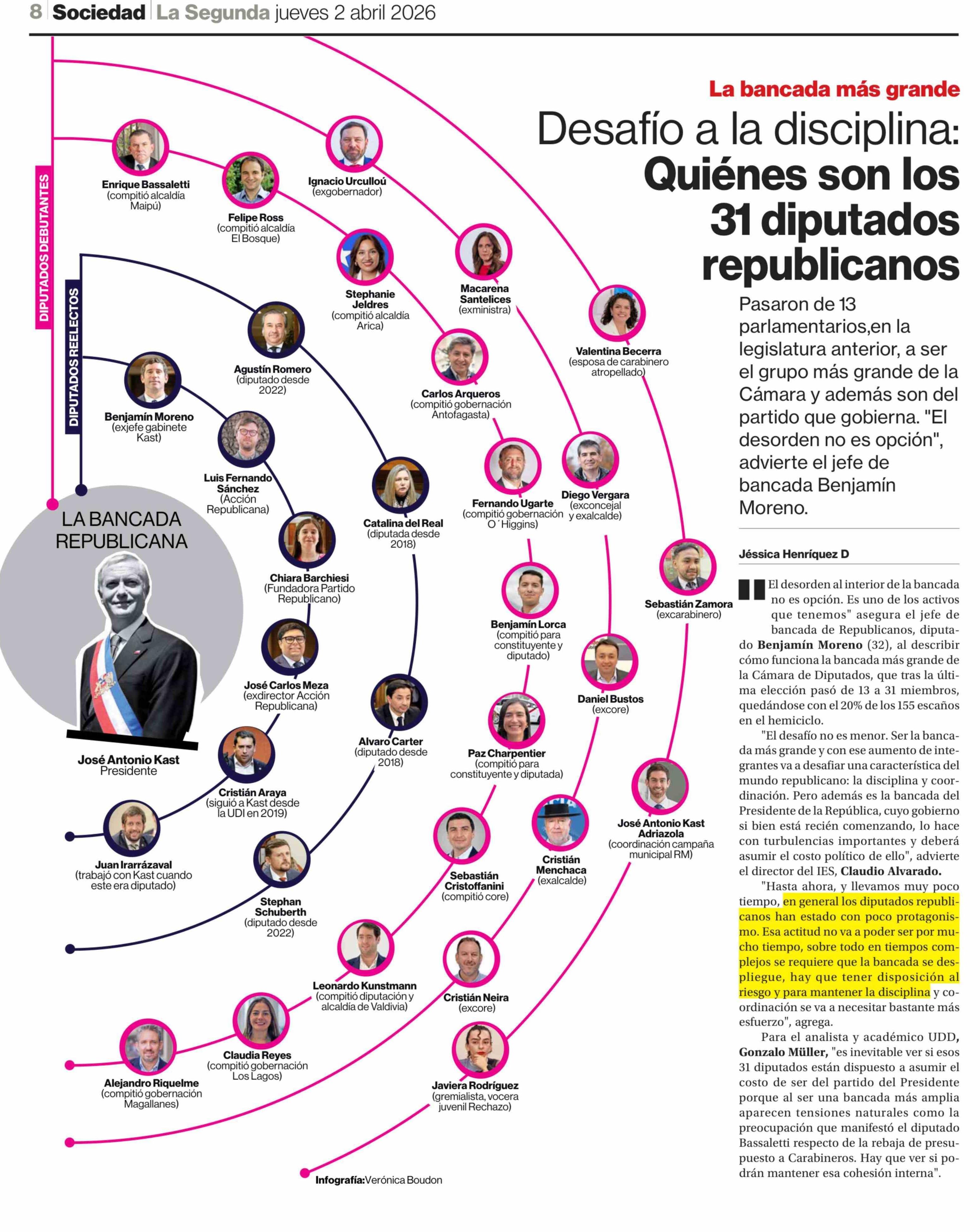 Desafío a la disciplina: Quiénes son los 31 diputados republicanos 02-04-2026 La Segunda |