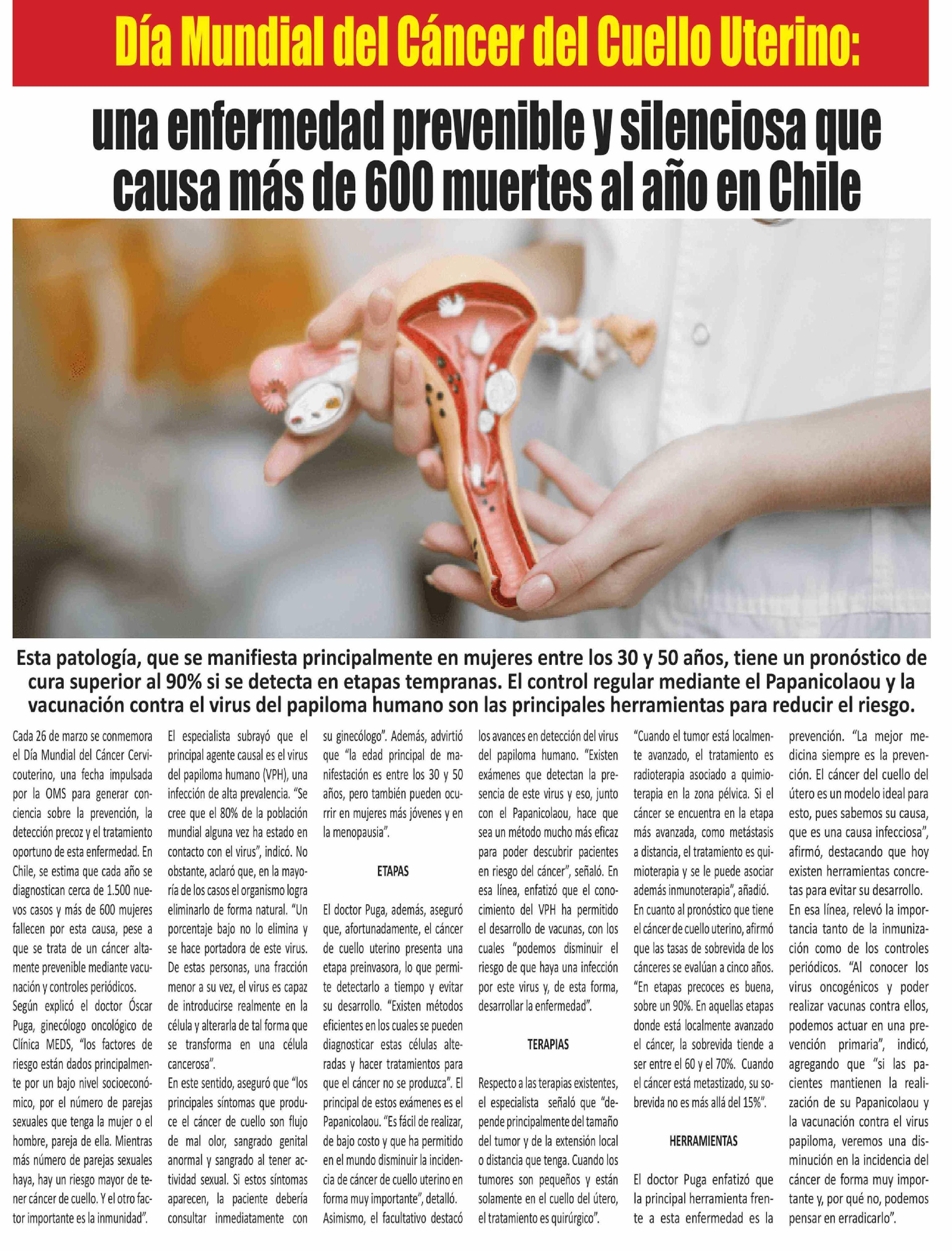 Día Mundial del Cáncer del Cuello Uterino: una enfermedad prevenible y silenciosa que causa más de 600 muertes al año en Chile 27-03-2026 El Longino |