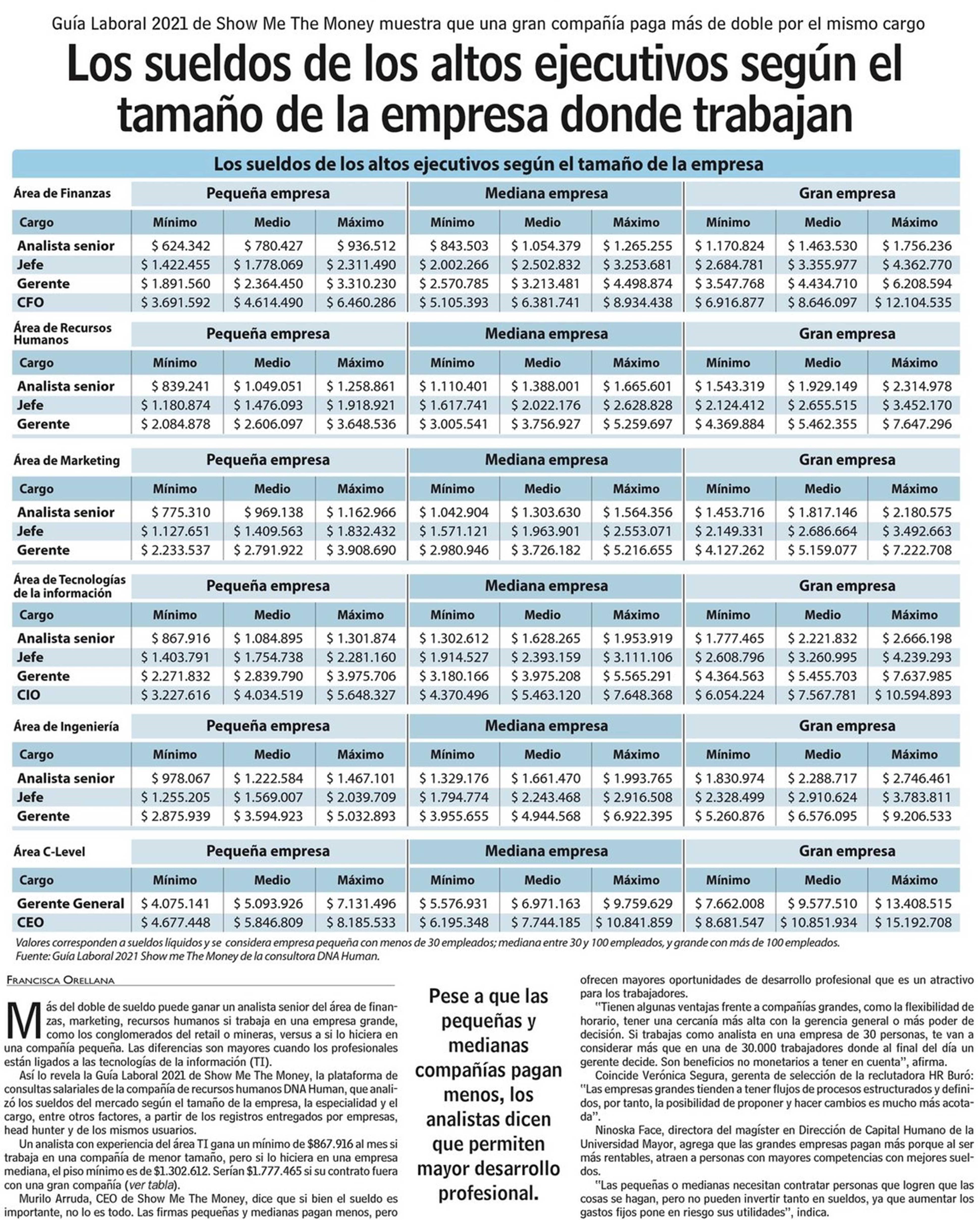 Los sueldos de los altos ejecutivos según el tamaño de la empresa donde trabajan 06-11-2021 Las Últimas Noticias |