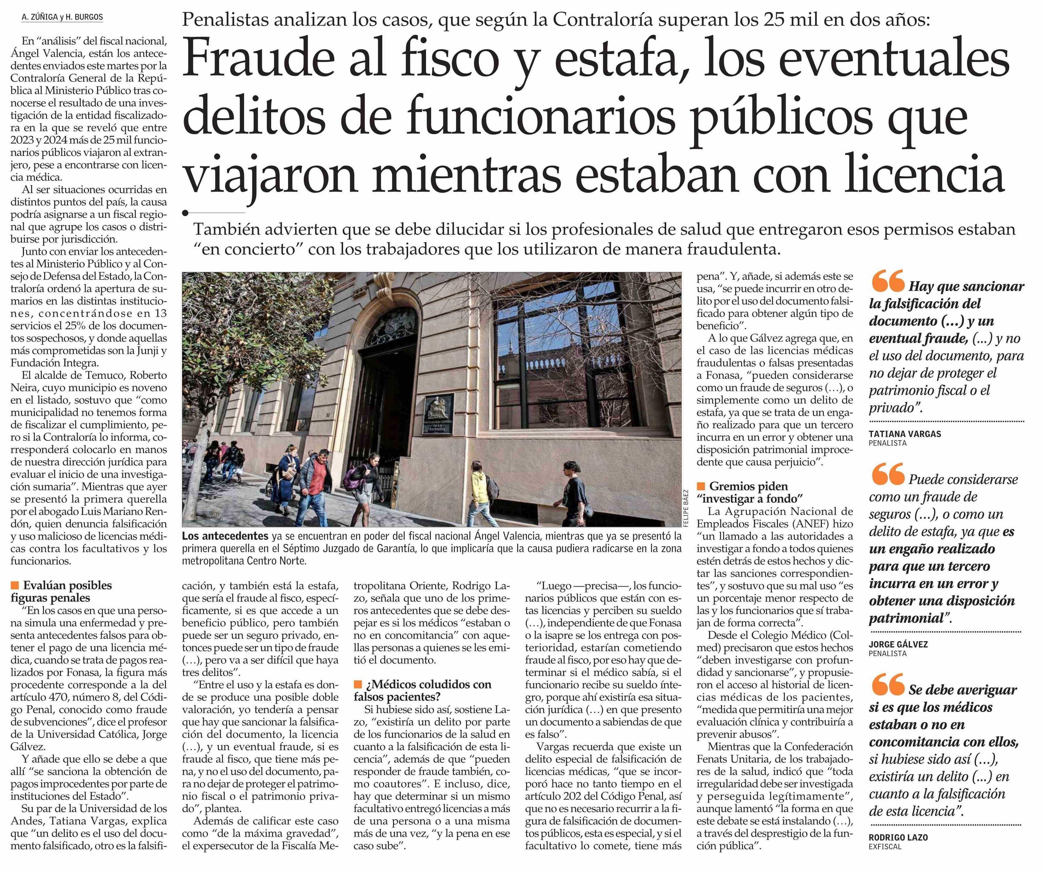 Fraude al fisco y estafa, los eventuales delitos de funcionarios públicos que viajaron mientras estaban con licencia 22-05-2025 El Mercurio |