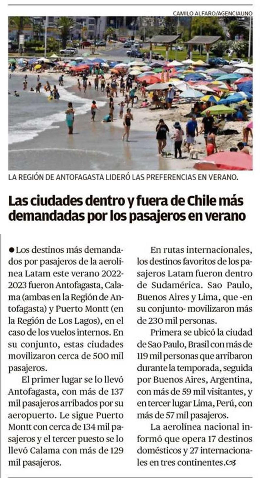 Las ciudades dentro y fuera de Chile más demandadas por los pasajeros en verano 14-03-2023 Diario Austral Región de Los Ríos |