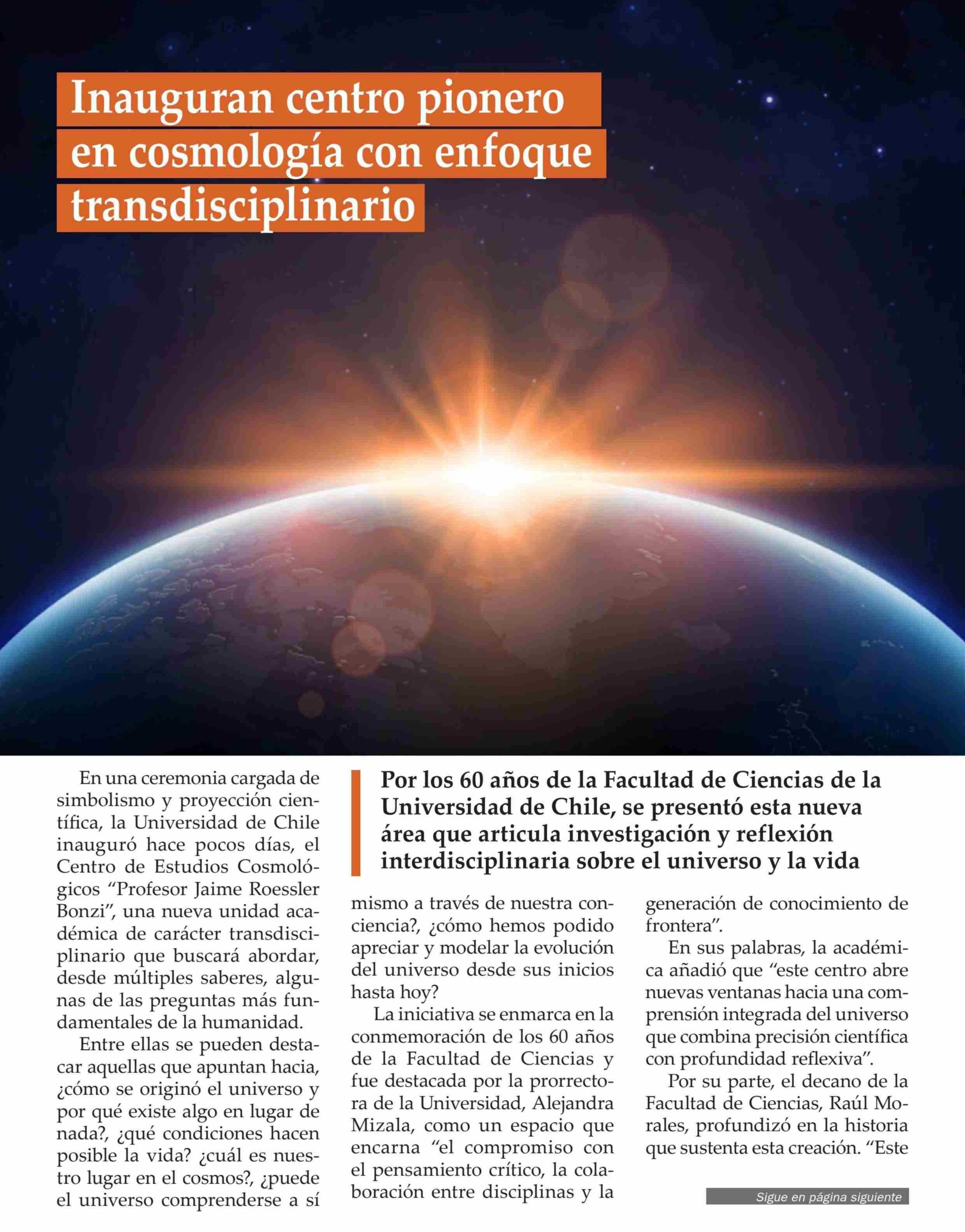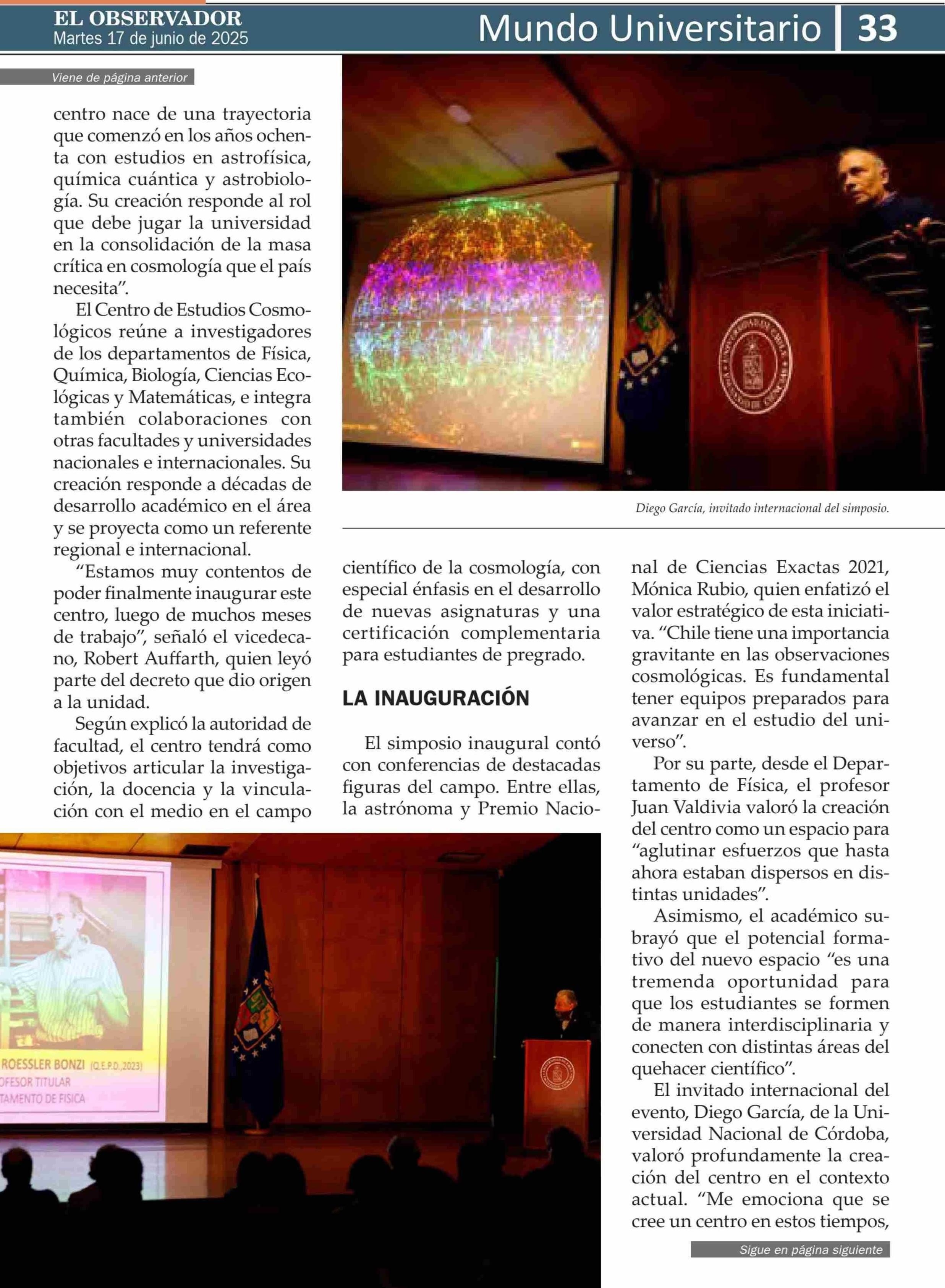 Inauguran centro pionero en cosmologia con enfoque transdisciplinario 17-06-2025 El Observador |