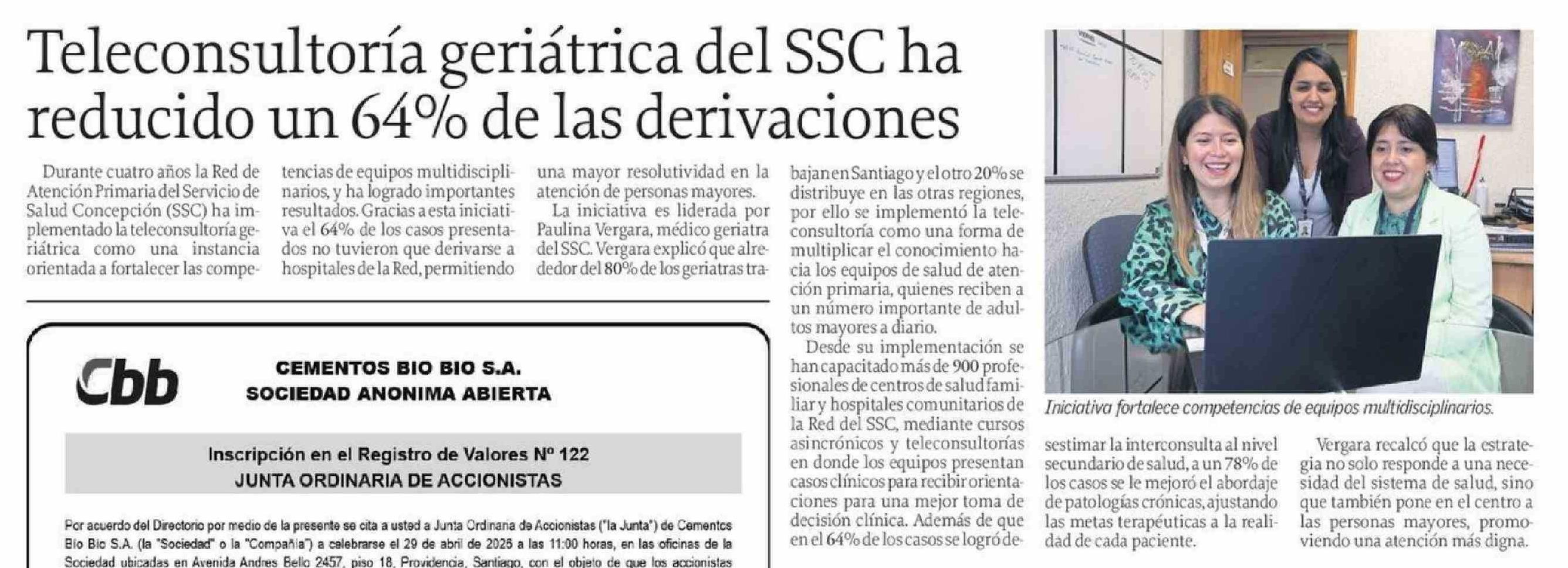 Título: Teleconsultoría geriátrica del SSC ha reducido un 64% de las derivaciones