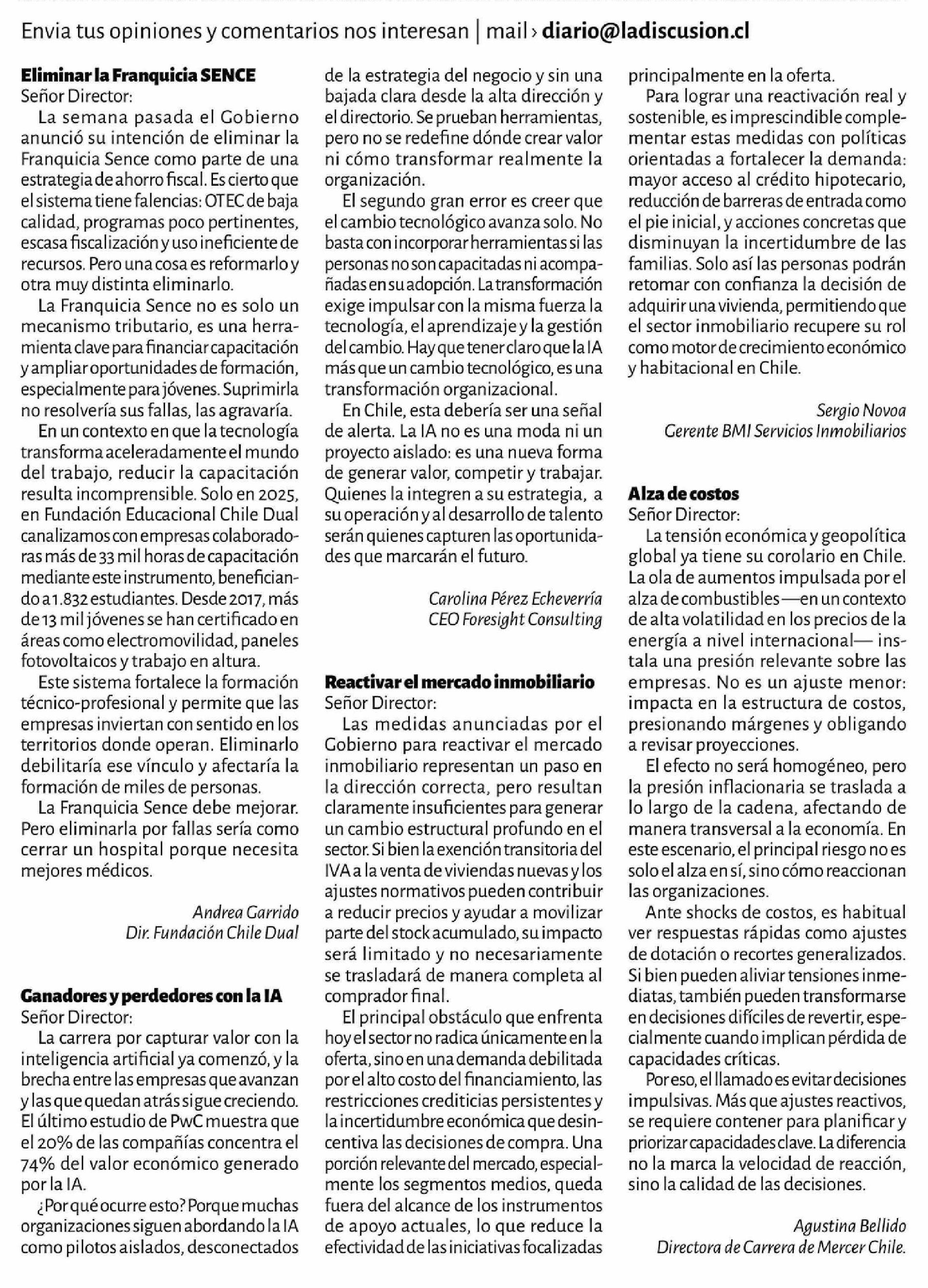 | Título: | Envia tus opiniones y comentarios nos interesan | mail > diario@ladiscusion.cl Eliminar la Franquicia SENCE Señor Director: La semana pasada el Gobierno de la estrategia del negocio y sin una bajada clara desde la alta dirección y principalmente en la oferta. anunció su intención de eliminar la Fran |