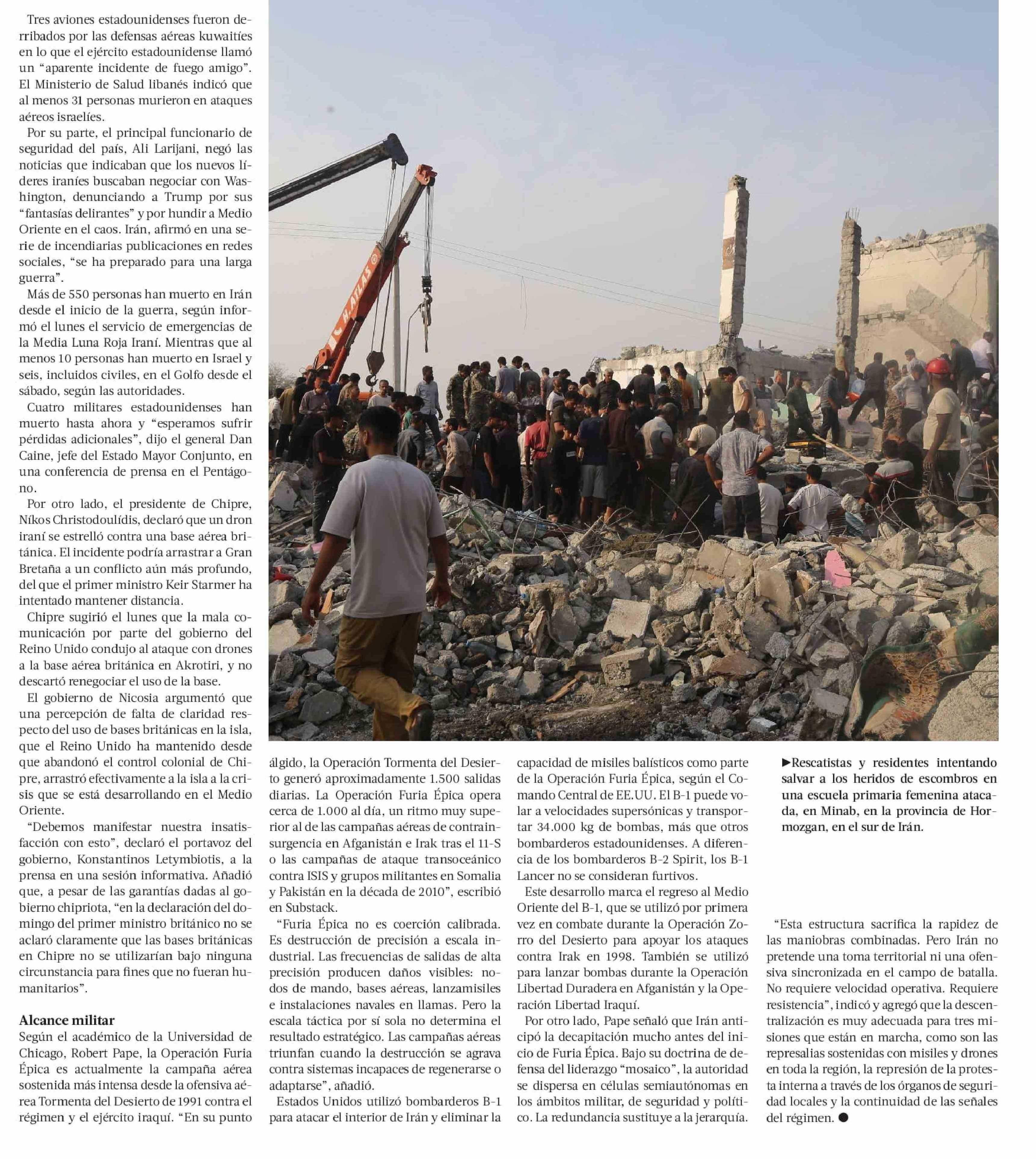 Título: Trump sugiere una guerra prolongada contra Irán y “Furia Epica” es la campaña aérea sostenida más intensa desde la operación contra Irak en 1991