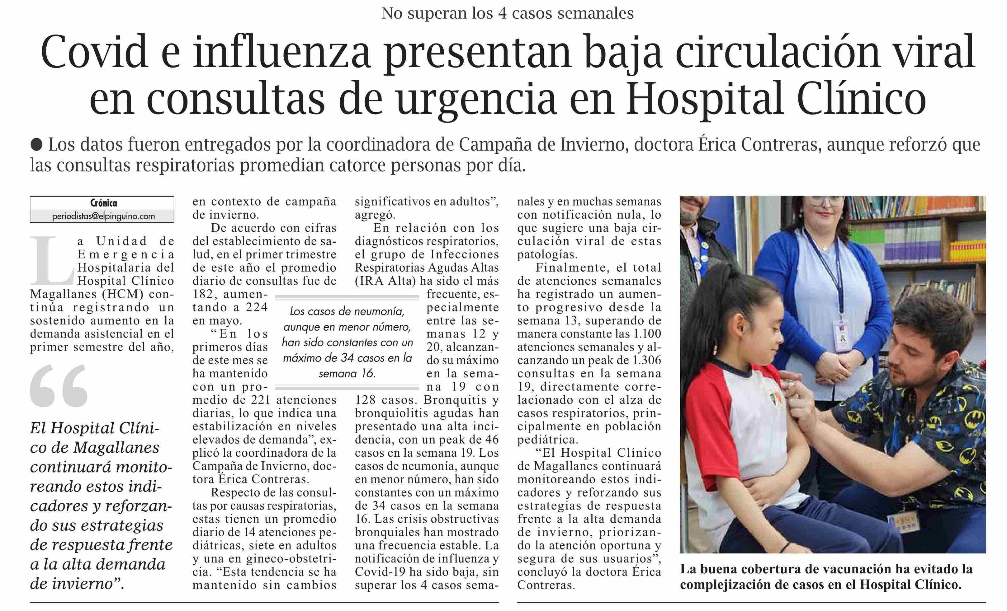 Covid e influenza presentan baja circulación viral en consultas de urgencia en Hospital Clínico 20-06-2025 El Pingüino |