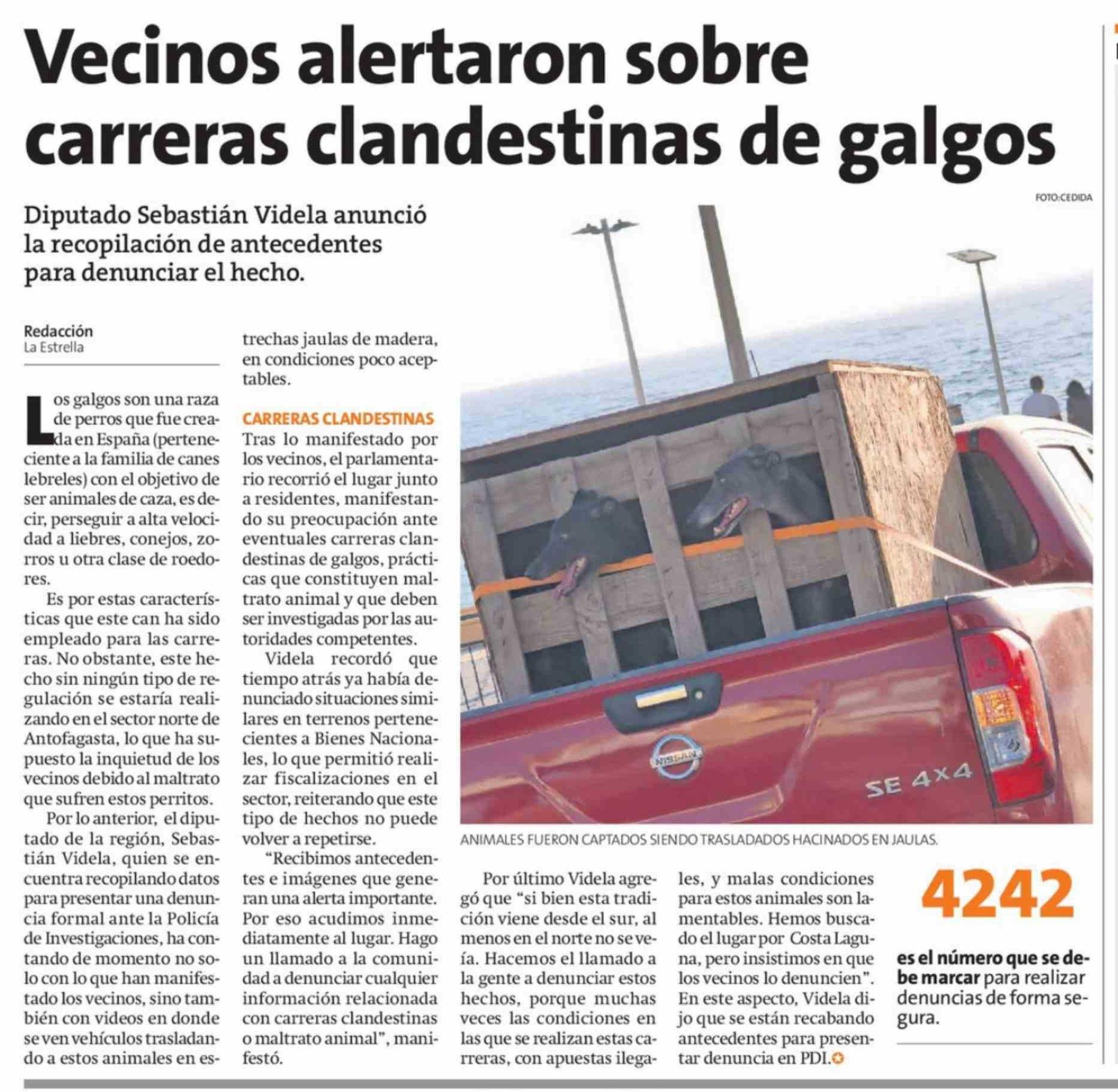 Título: Vecinos alertaron sobre carreras clandestinas de galgos