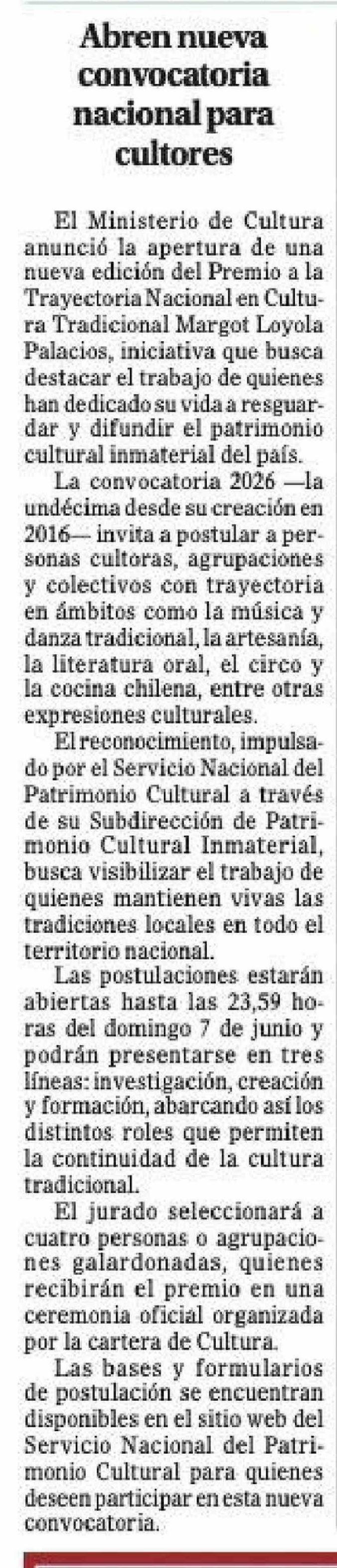 Abren nueva convocatoria nacional para cultores 29-03-2026 El Magallanes |