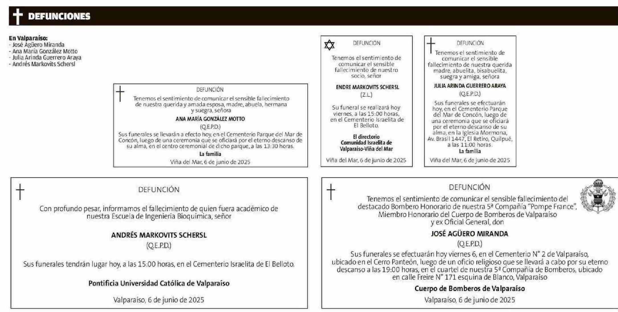 Obituario: obituarios 06-06-2025 El Mercurio de Valparaíso |