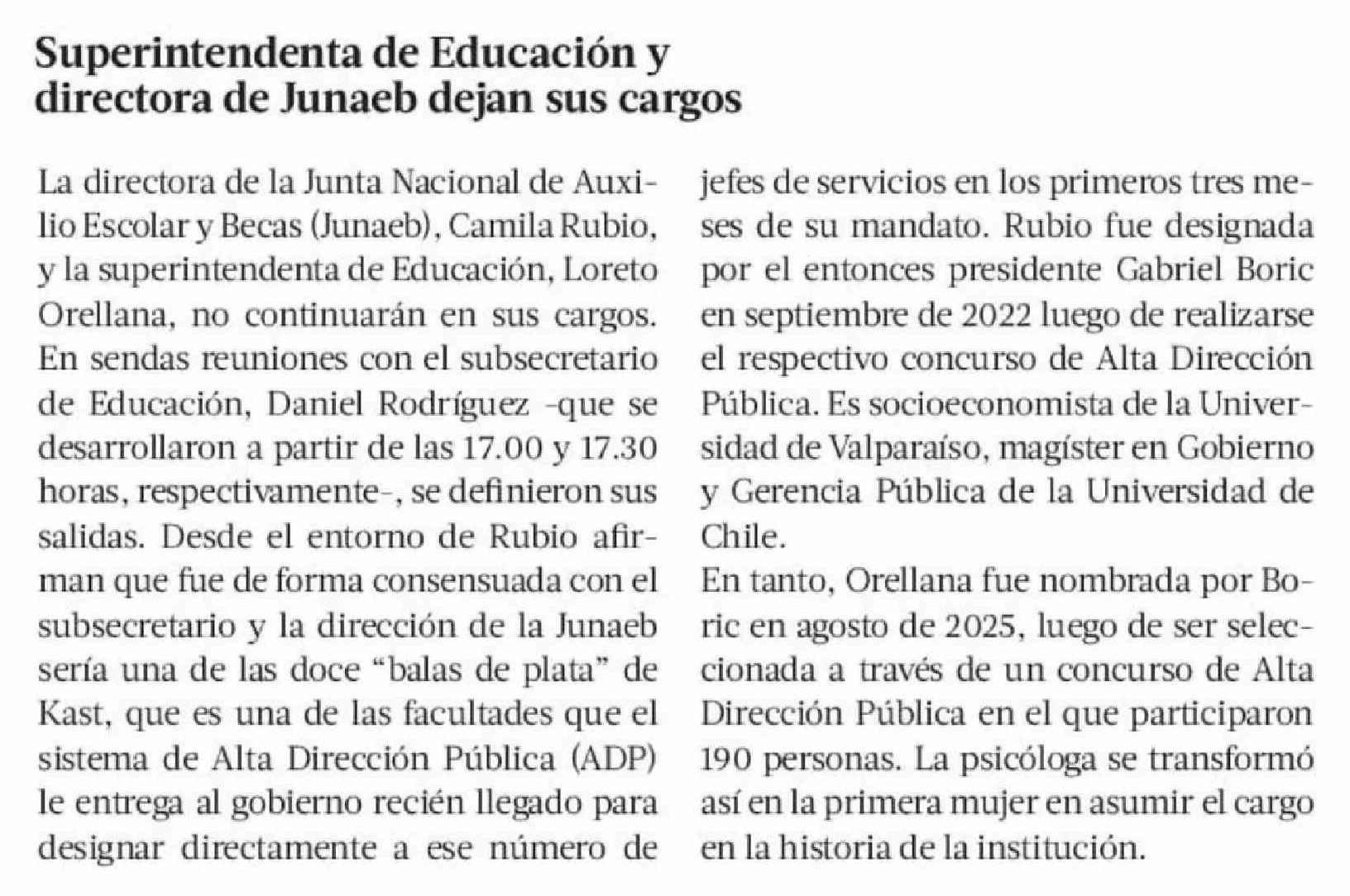 Título: Superintendenta de Educación y directora de Junaeb dejan sus cargos