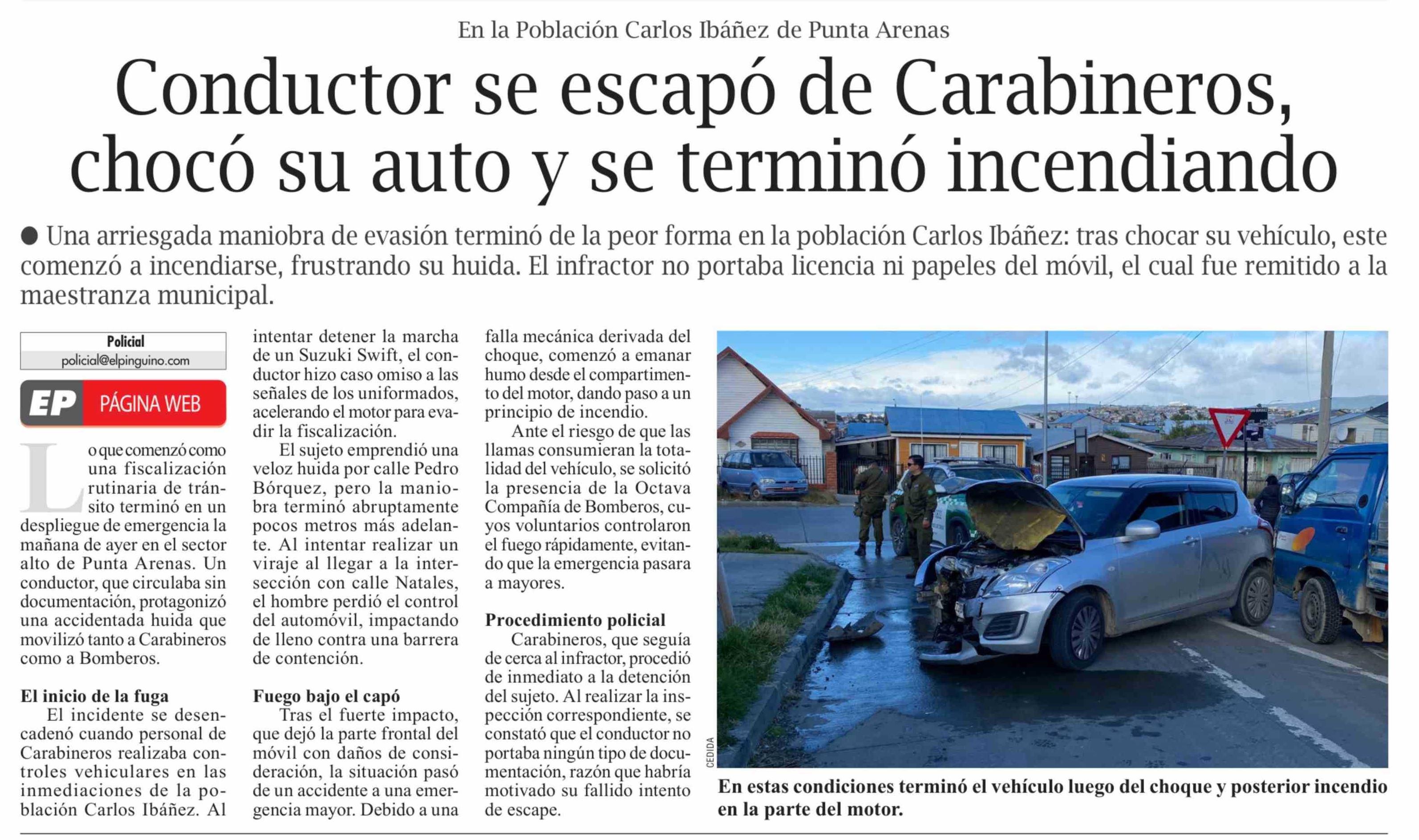 Título: Conductor se escapó de Carabineros, chocó su auto y se terminó incendiando