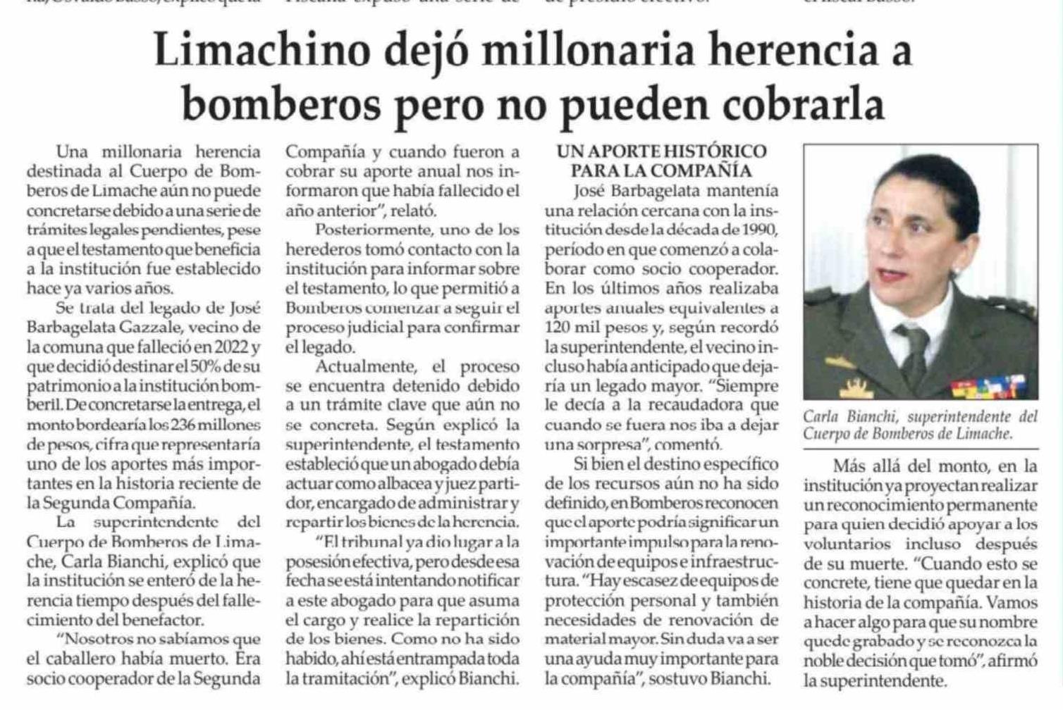 Título: Limachino dejó millonaria herencia a bomberos pero no pueden cobrarla