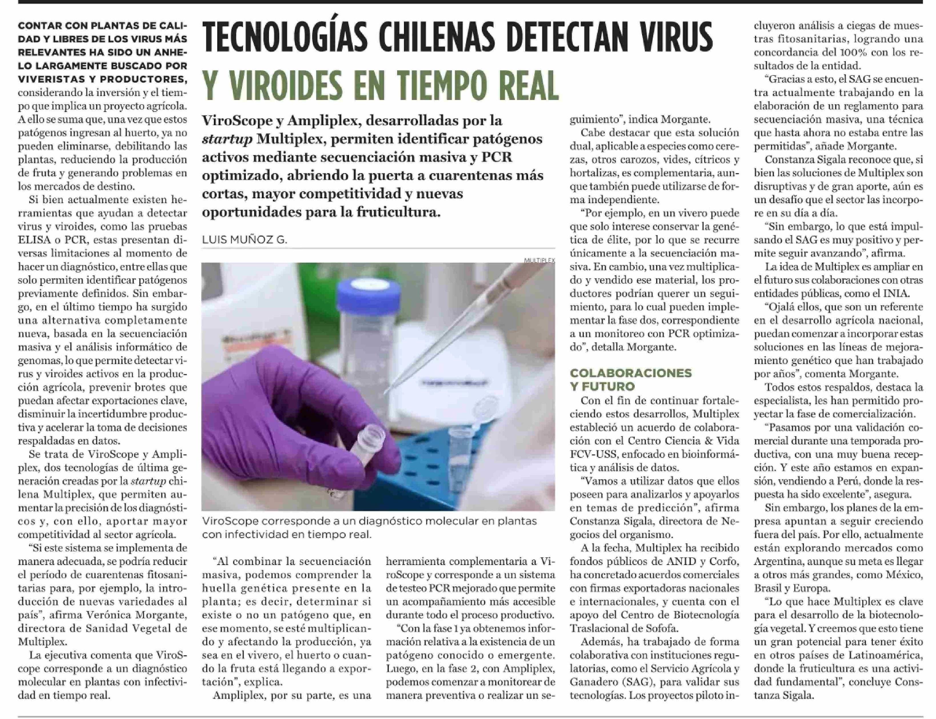 TECNOLOGÍAS CHILENAS DETECTAN VIRUS Y VIROIDES EN TIEMPO REAL 09-02-2026 El Mercurio |