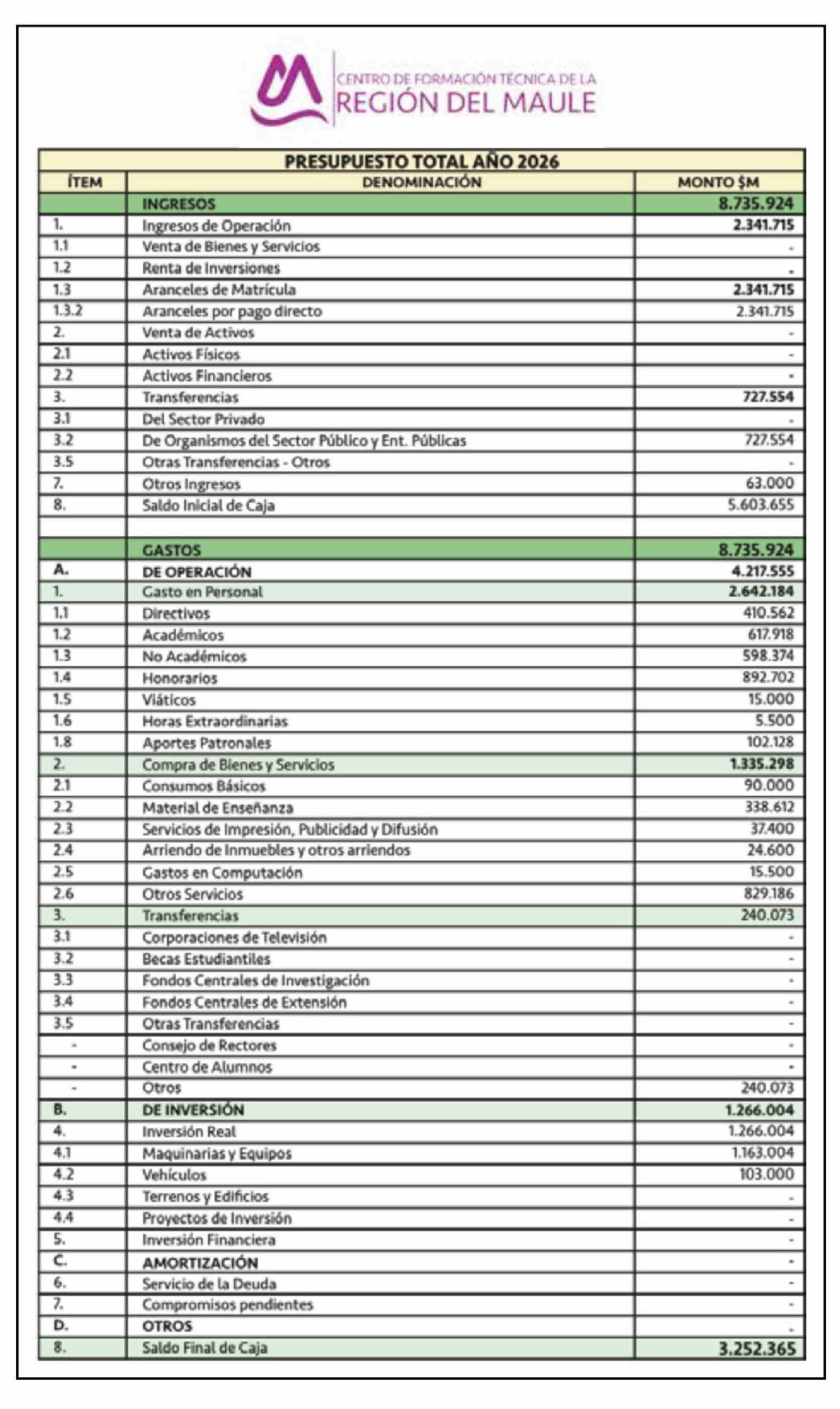 PRESUPUESTO TOTAL AÑO 2026 DENOMINACIÓN INGRESOS 12-02-2026 La Prensa de Curicó |
