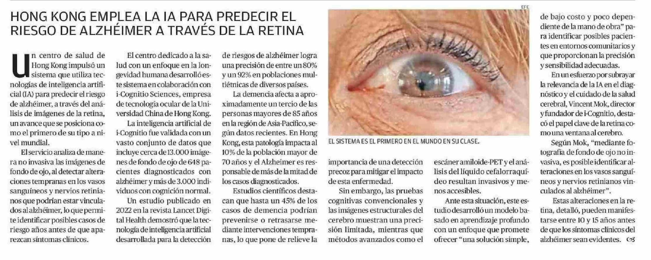 Título: HONG KONG EMPLEA LA IA PARA PREDECIR EL RIESGO DE ALZHÉIMER A TRAVÉS DE LA RETINA