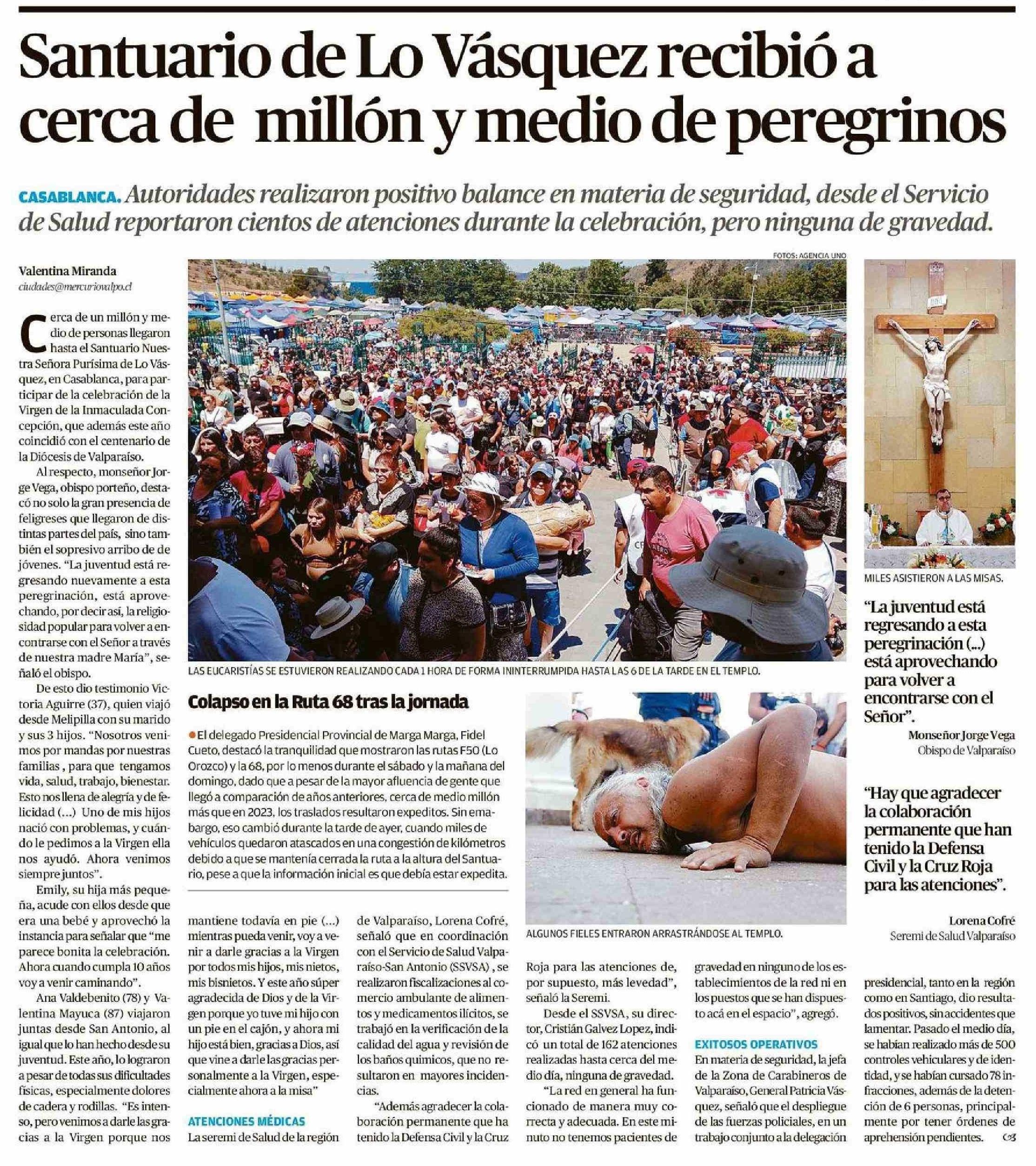 Título: Santuario de Lo Vásquez recibió a cerca de millón y medio de peregrinos
