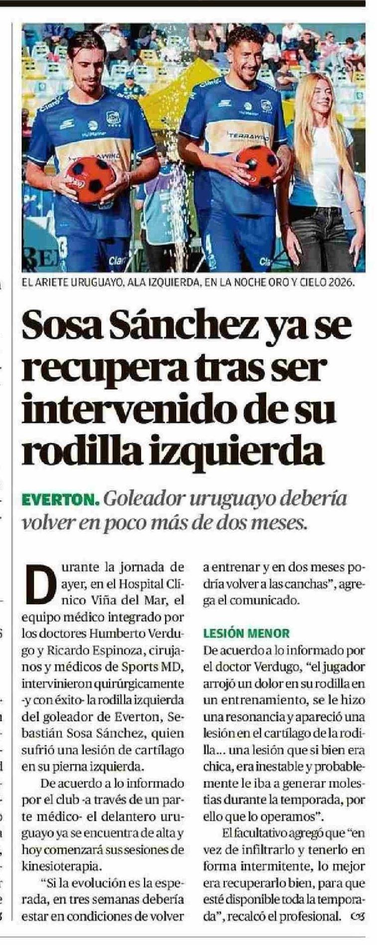 Sosa Sánchez ya se recupera tras ser intervenido de su rodilla izquierda 22-01-2026 El Mercurio de Valparaíso |