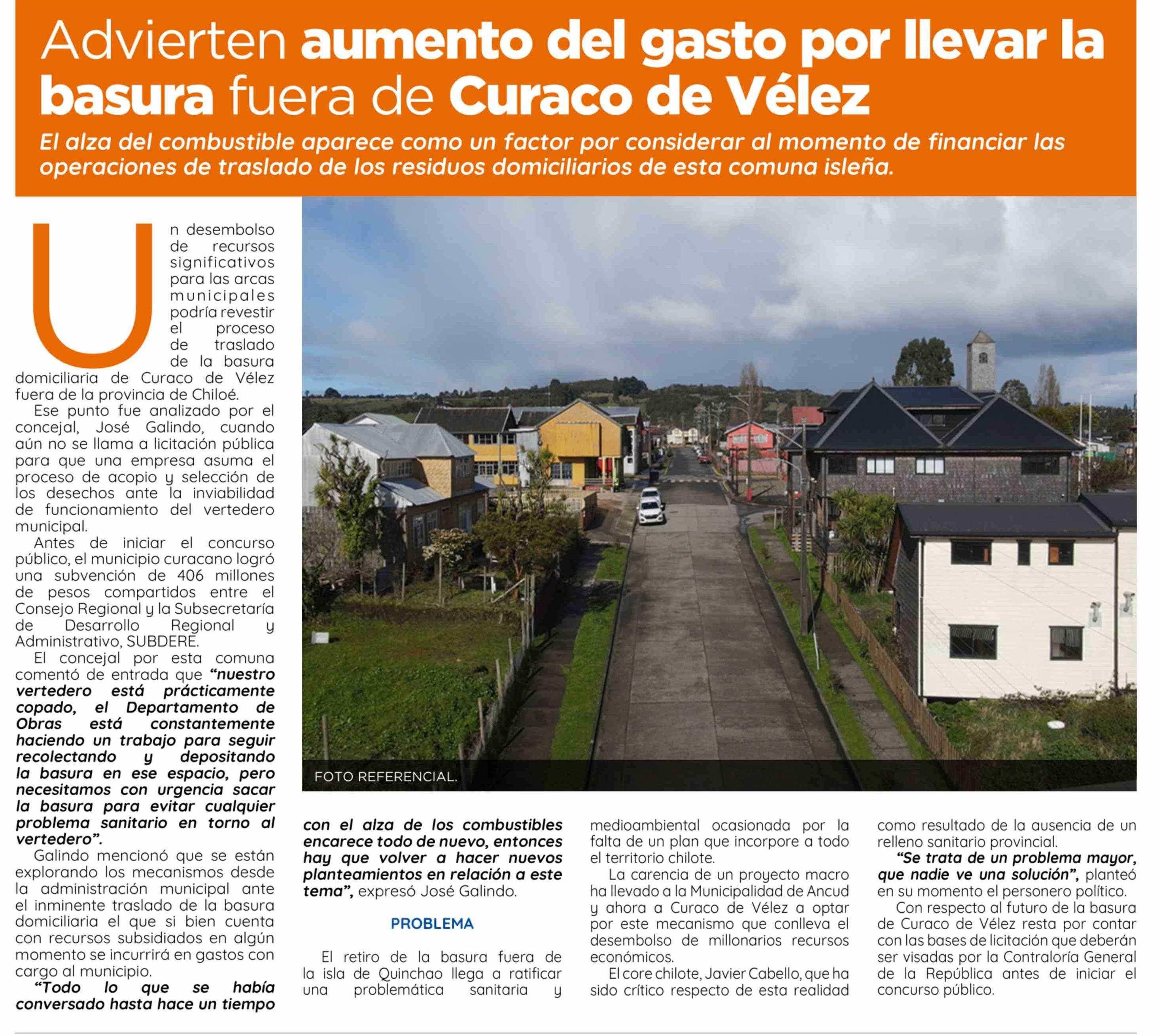 Advierten aumento del gasto por llevar la basura fuera de Curaco de Vélez 21-04-2026 El Insular |