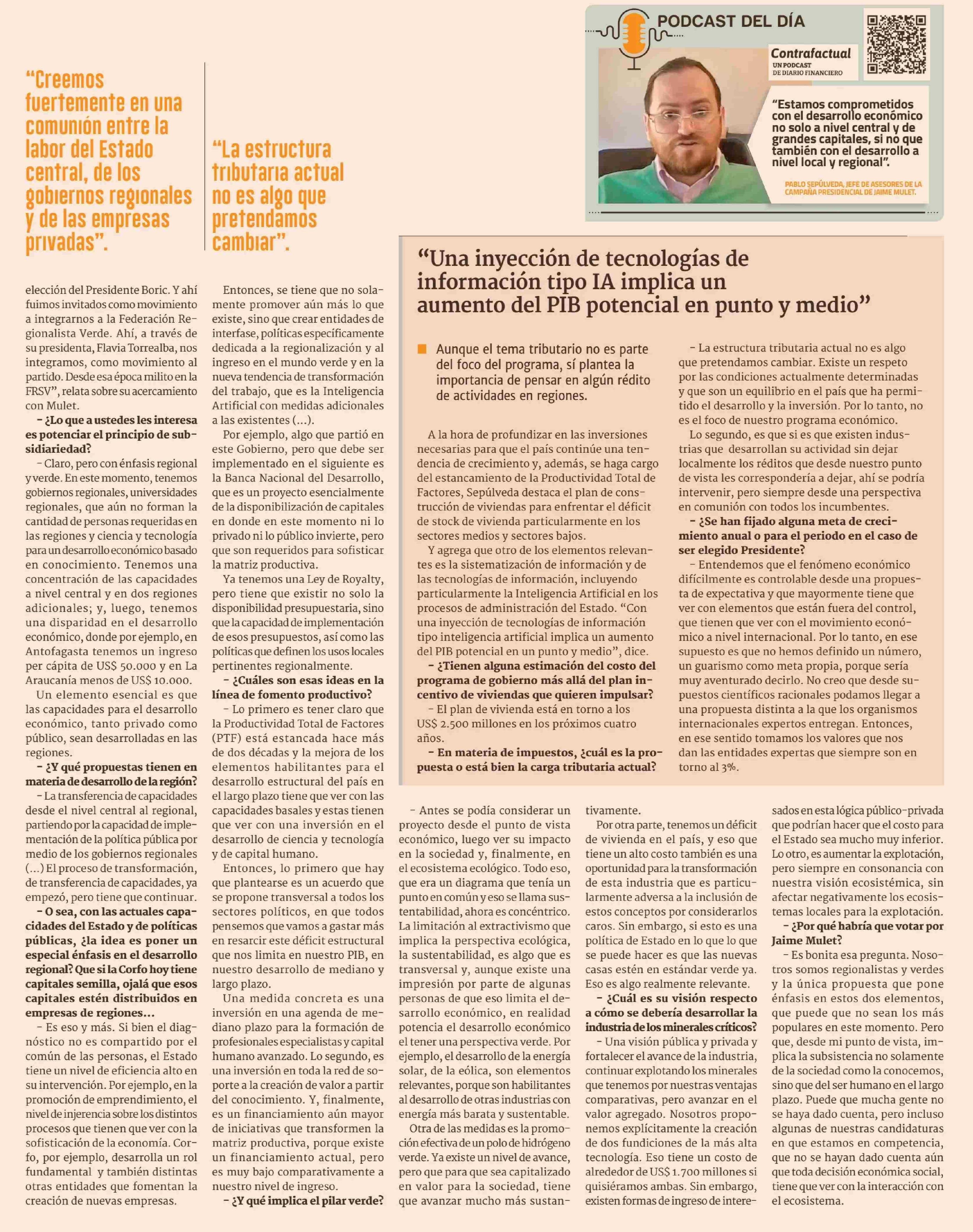 "El concepto base es que el Estado.intervenga cuando los privados no puedan desarrollar ciertas actividades” 13-06-2025 Diario Financiero |