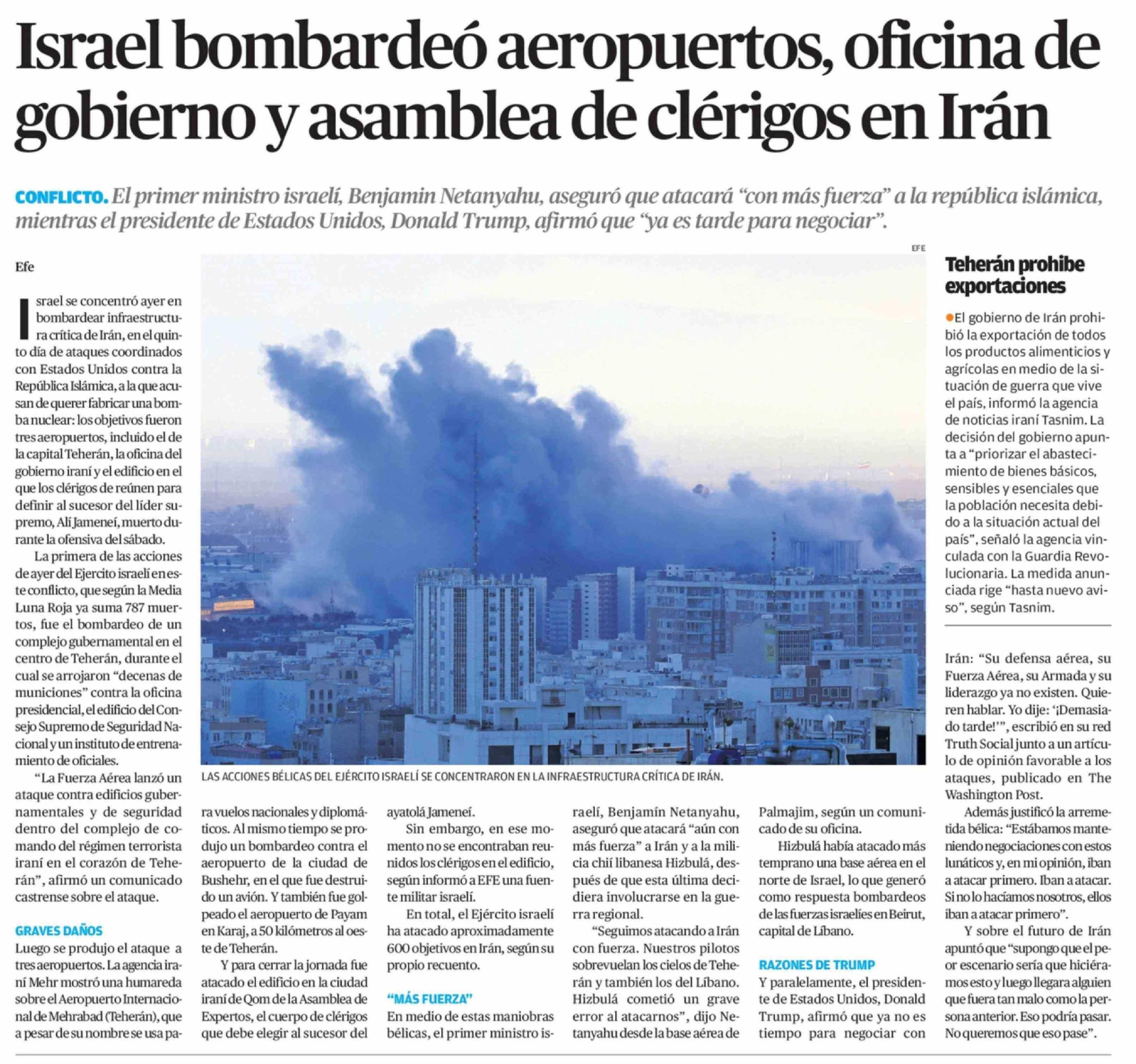Título: Israel bombardeó aeropuertos, oficina de gobierno y asamblea de clérigos en Irán
