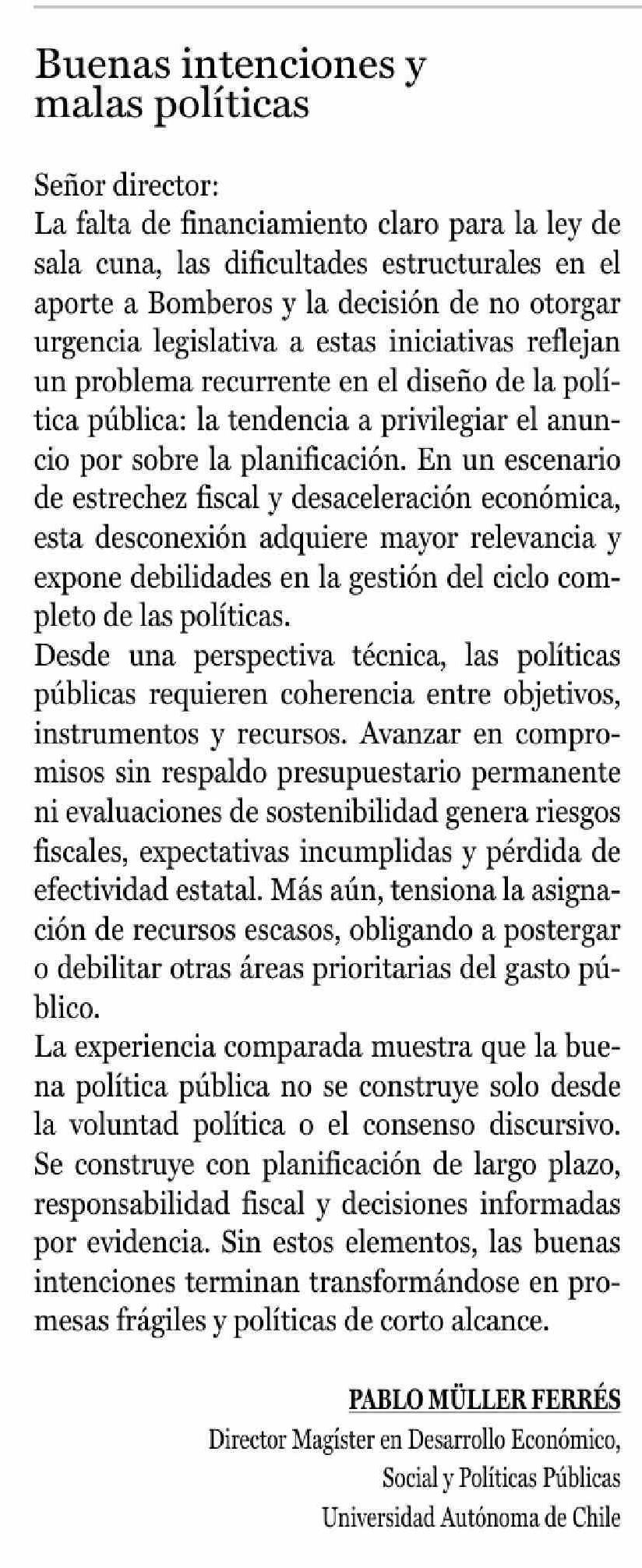 Cartas: Buenas intenciones y malas políticas