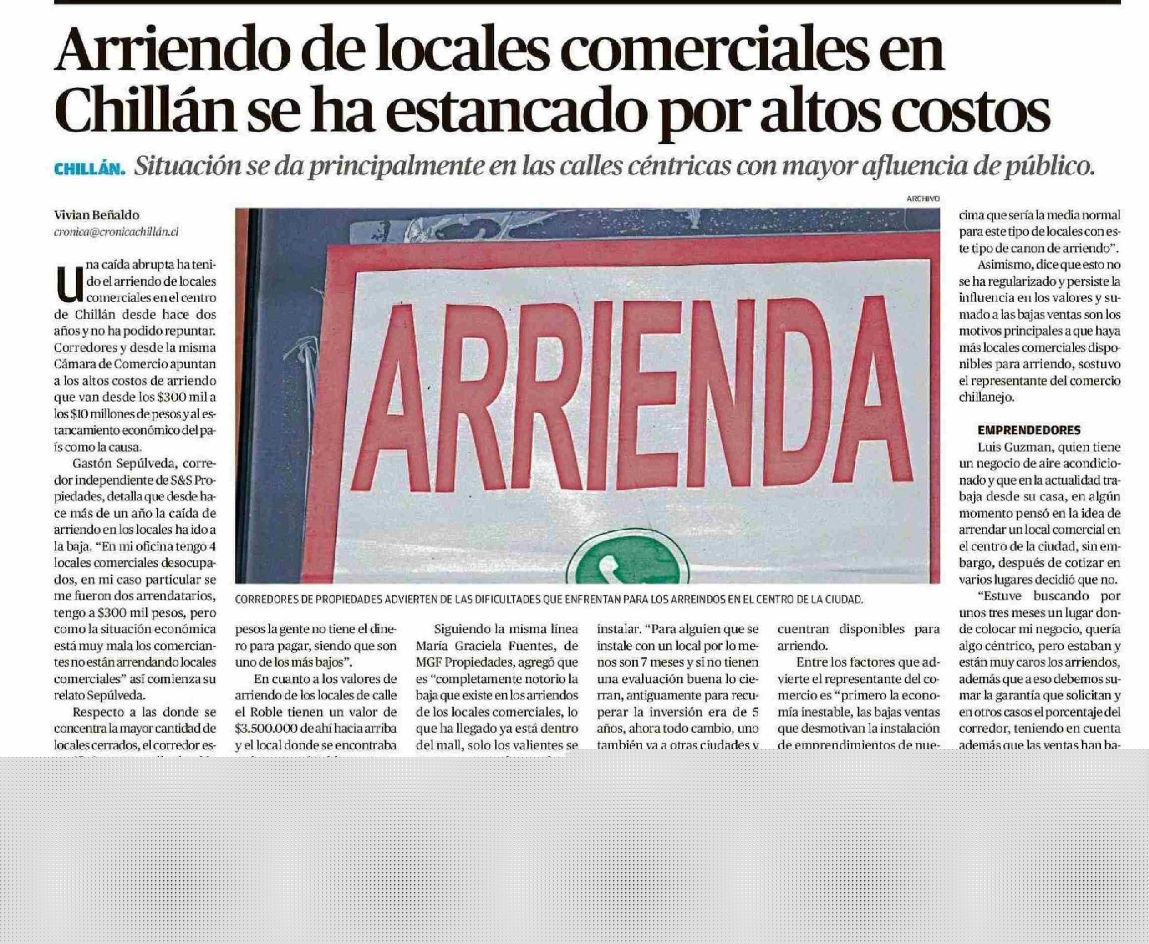 | Título: | Arriendo de locales comerciales en Chillán se ha estancado por altos costos |