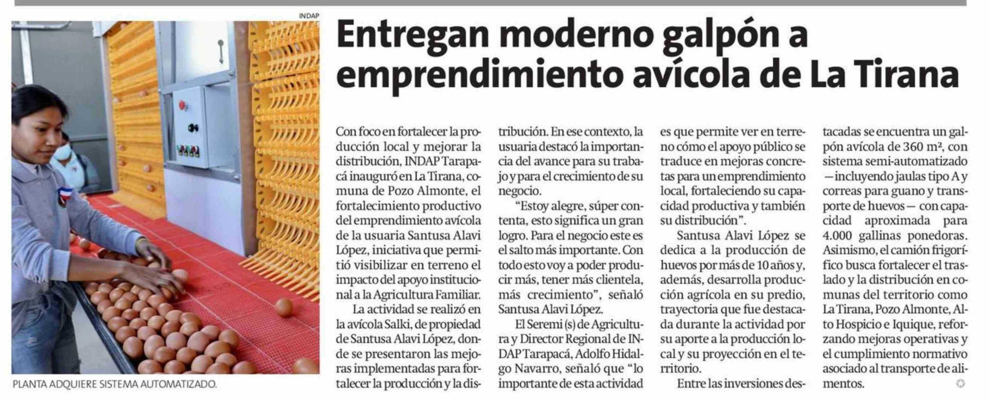 Entregan moderno galpón a emprendimiento avícola de La Tirana 19-01-2026 La Estrella de Iquique |