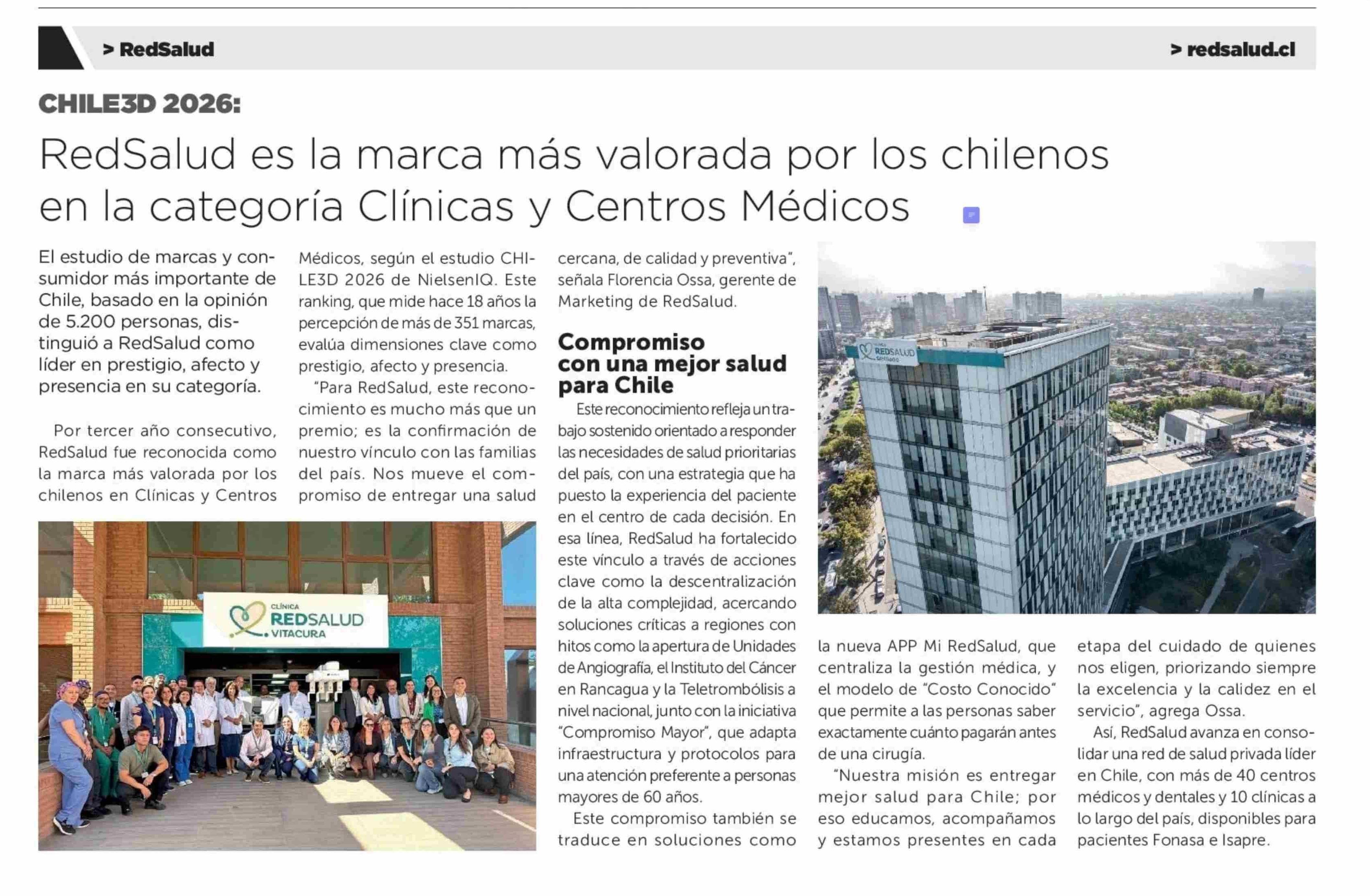 Título: RedSalud es la marca más valorada por los chilenos en la categoría Clínicas y Centros Médicos