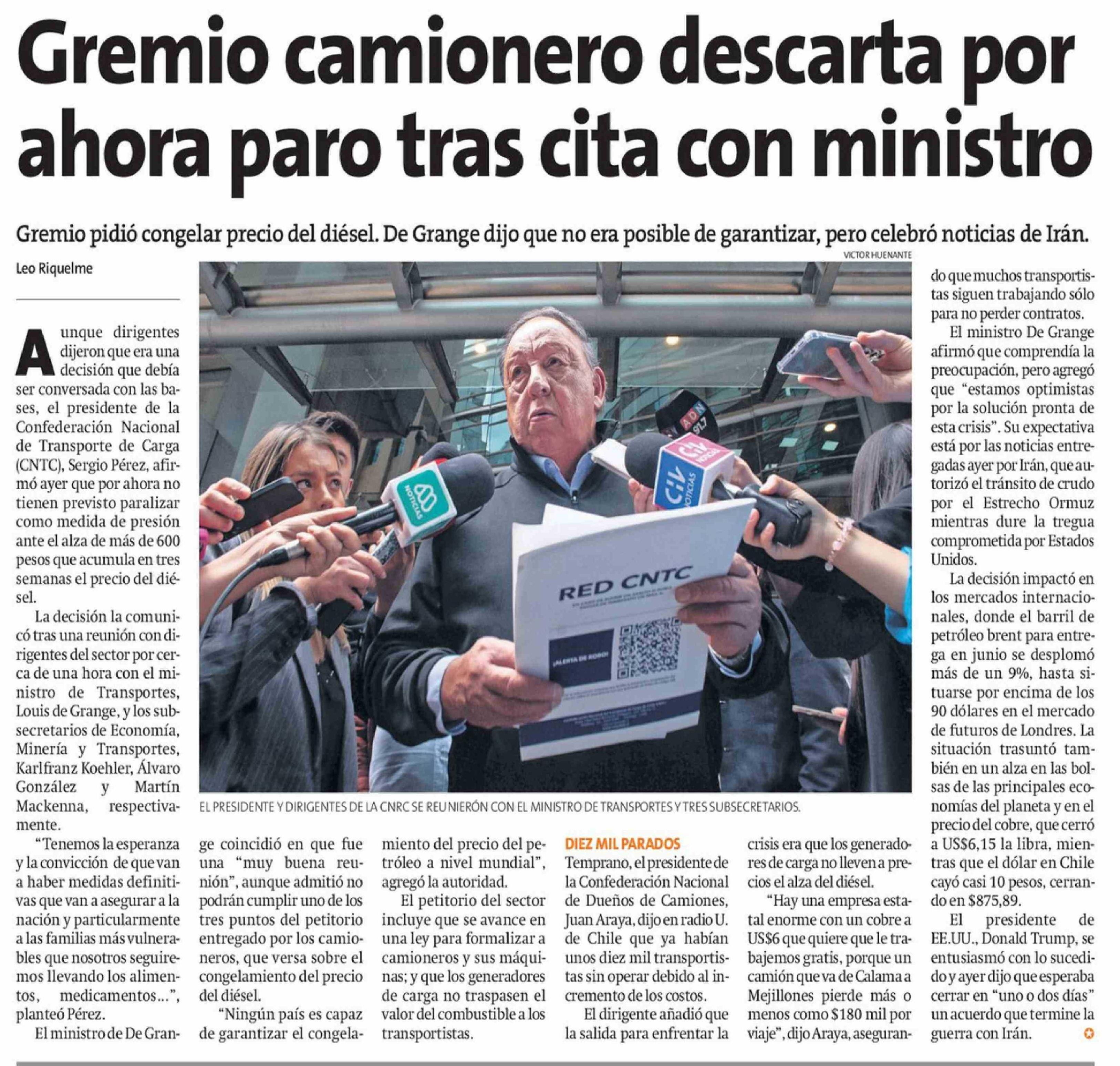 Gremio camionero descarta por ahora paro tras cita con ministro 18-04-2026 La Estrella de Iquique |