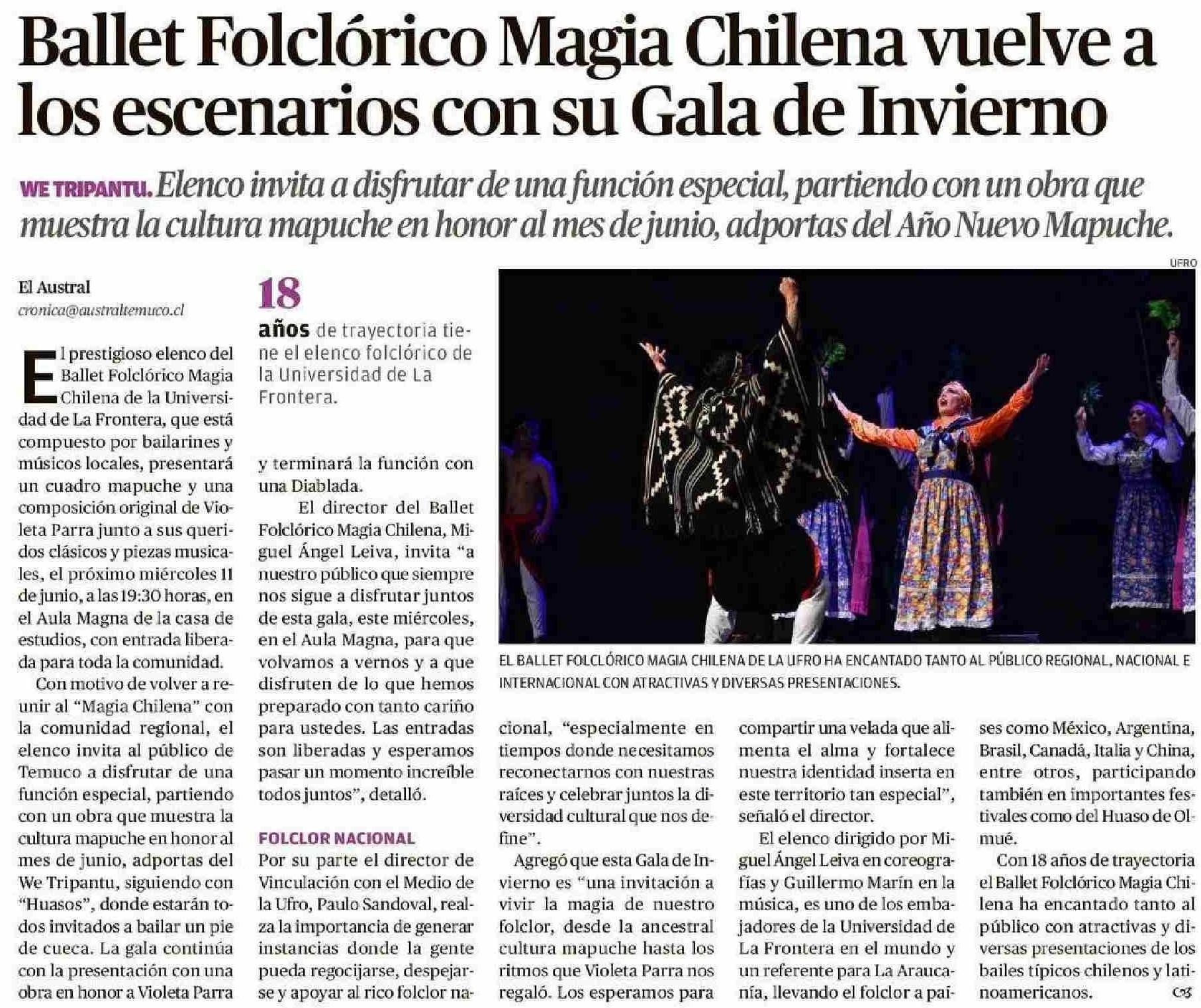 | Título: | Ballet Folclórico Magia Chilena vuelve a los escenarios con su Gala de Invierno |