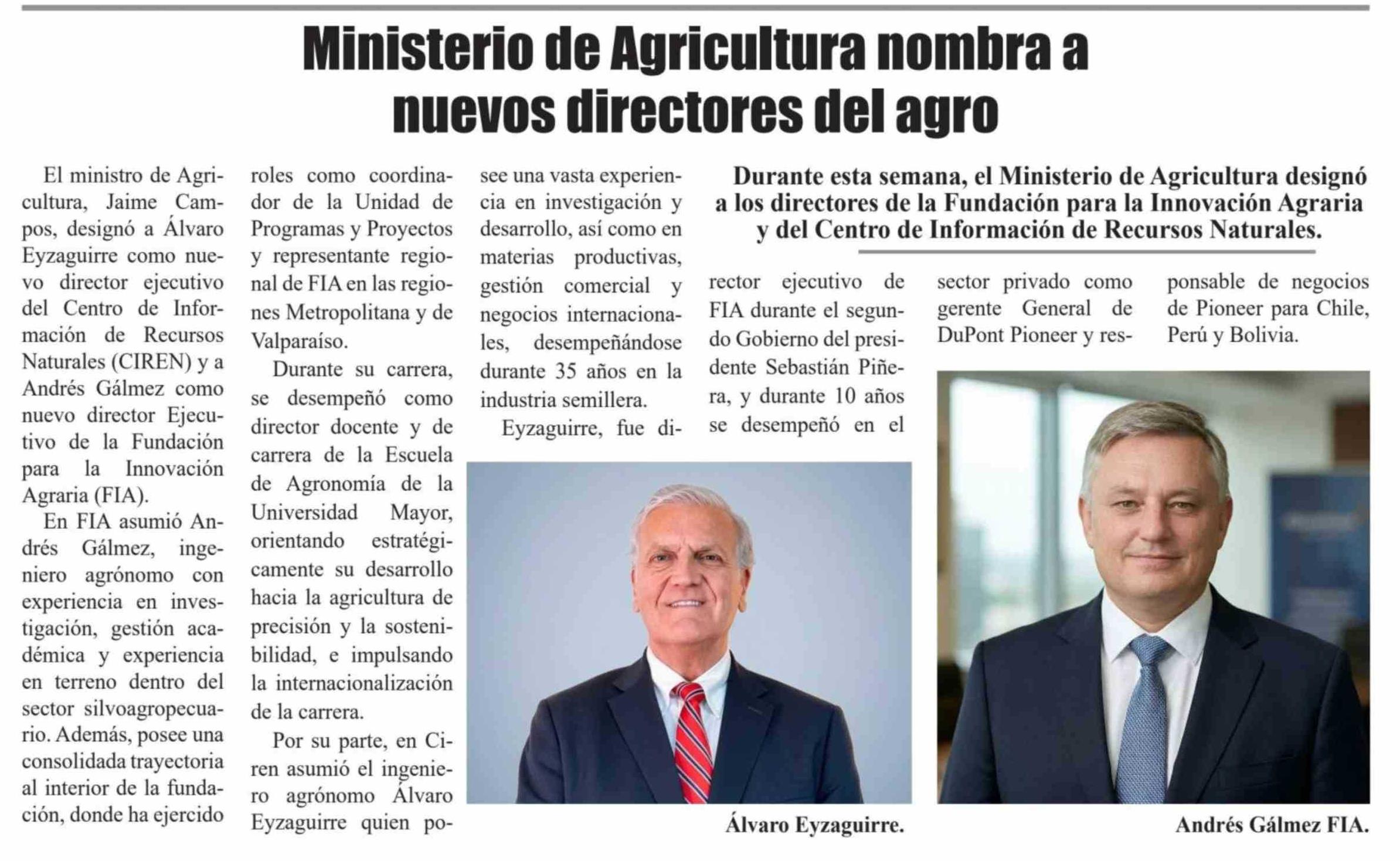 Título: Ministerio de Agricultura nombra a nuevos directores del agro