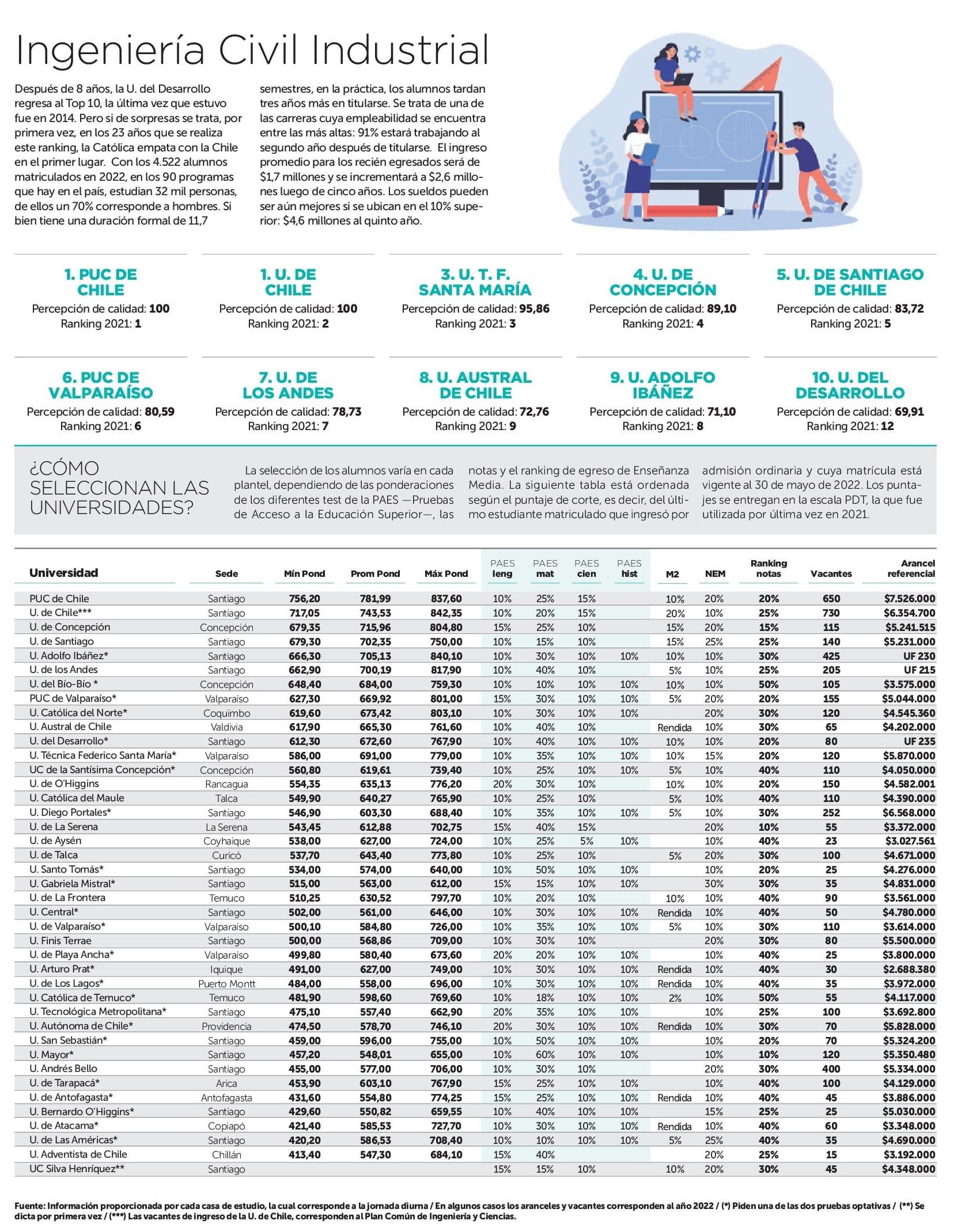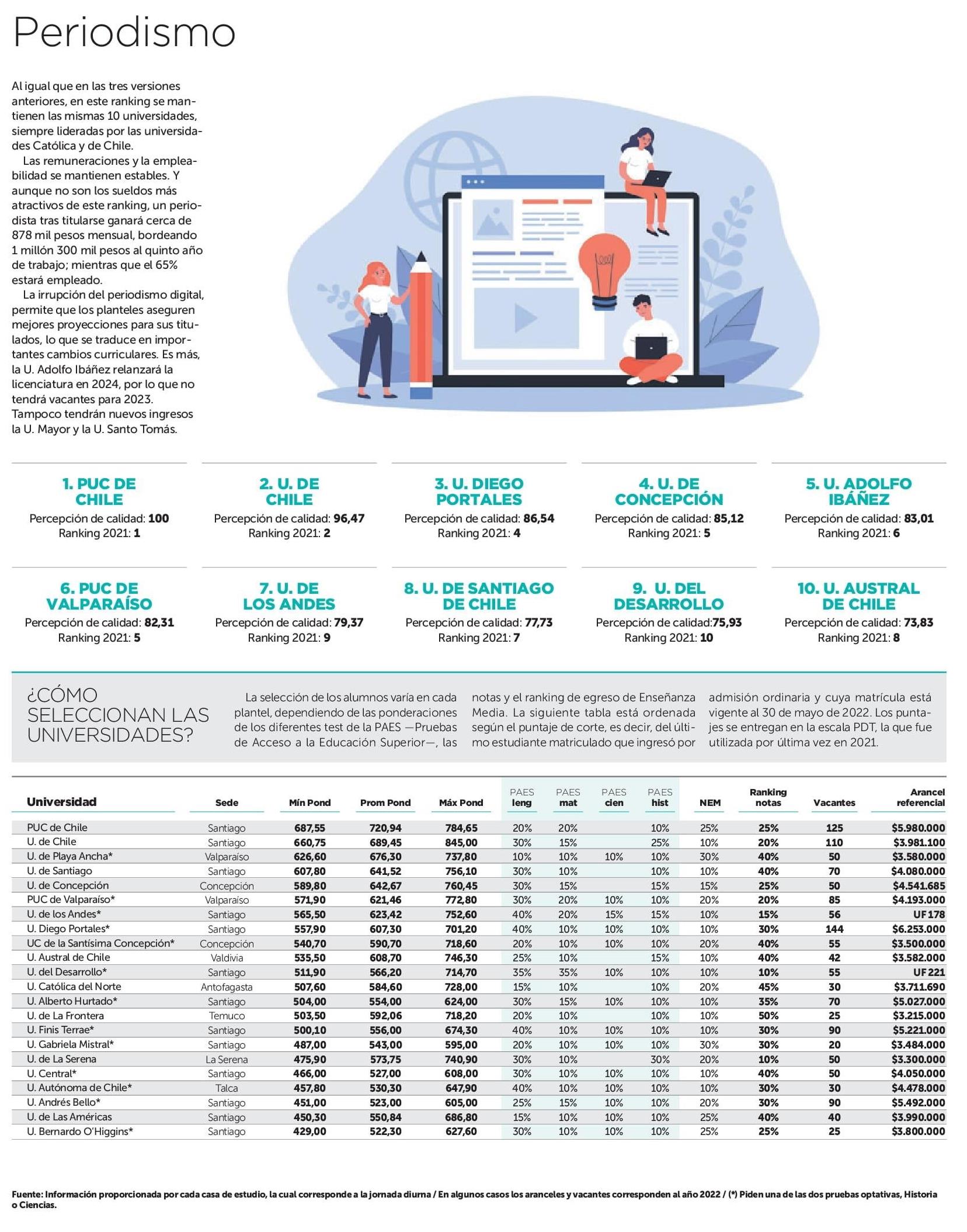 Ranking de percepción de calidad del mercado laboral por carrera 18-12-2022 La Tercera |