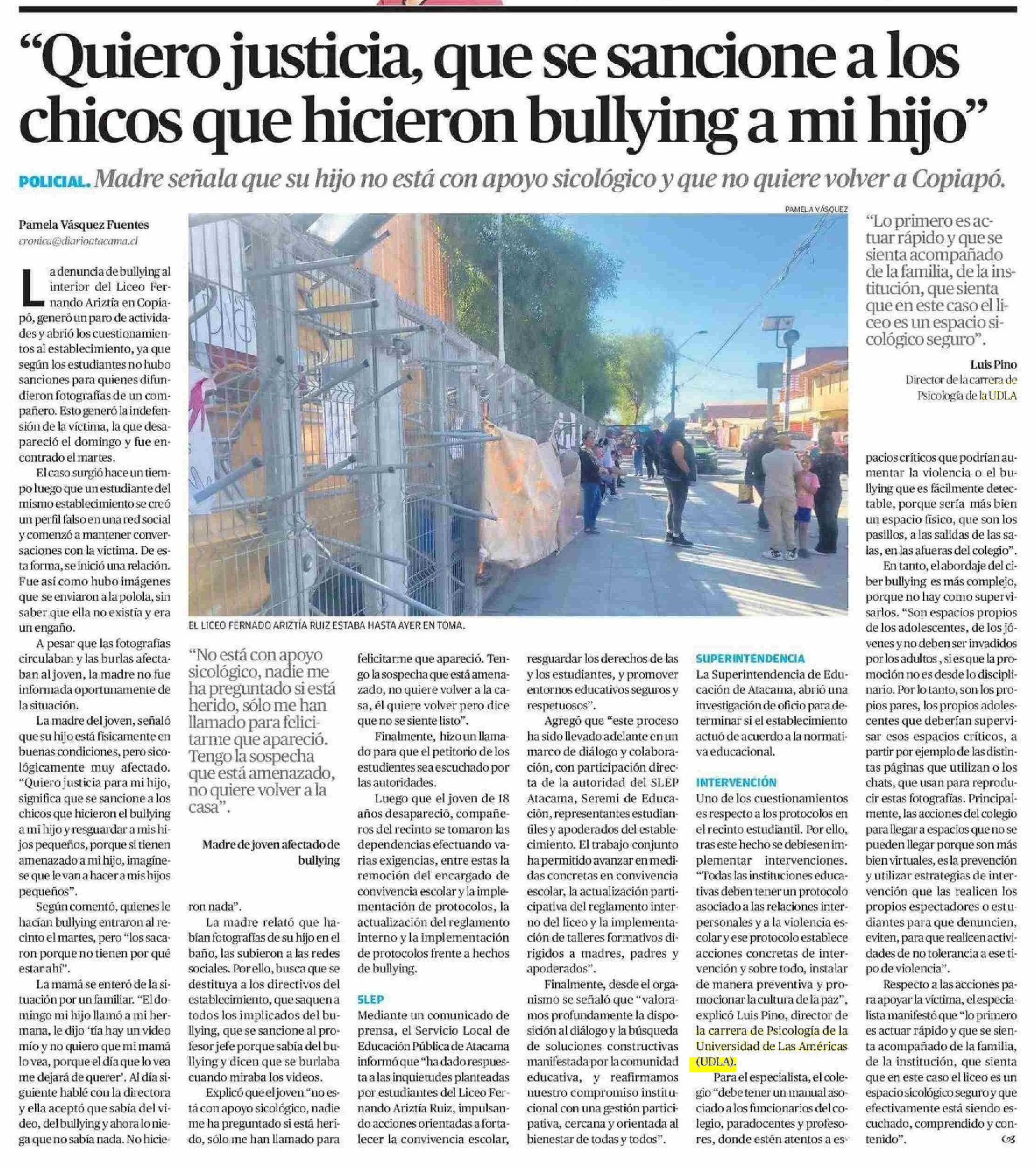“Quiero justicia, que se sancione a los chicos que hicieron bullying a mi hijo” 29-05-2025 El Diario de Atacama |