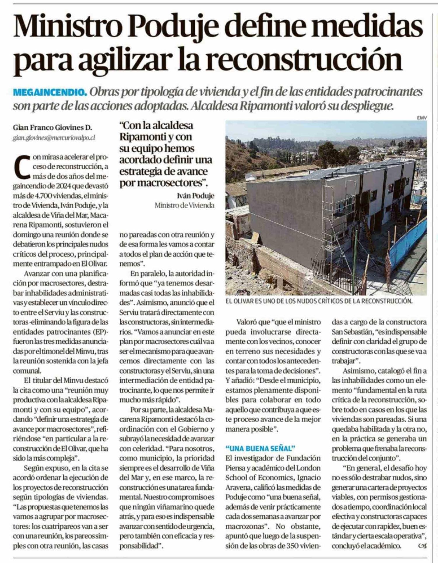 Ministro Poduje define medidas para agilizar la reconstrucción 07-04-2026 El Mercurio de Valparaíso |