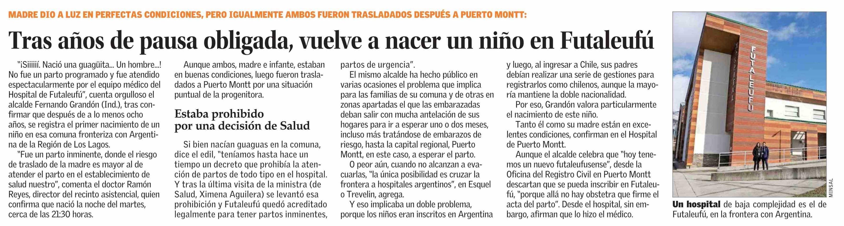 Tras años de pausa obligada, vuelve a nacer un niño en Futaleufú 22-06-2025 El Mercurio |