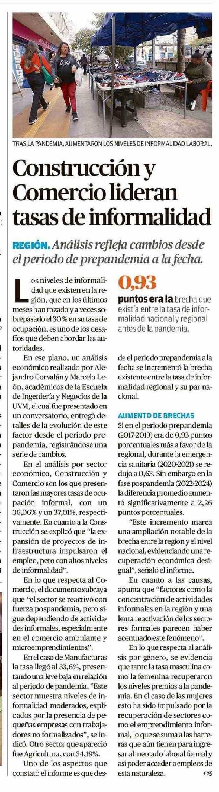 Construcción y tasas de informalidad Comercio lideran 14-01-2025 El Mercurio de Valparaíso |