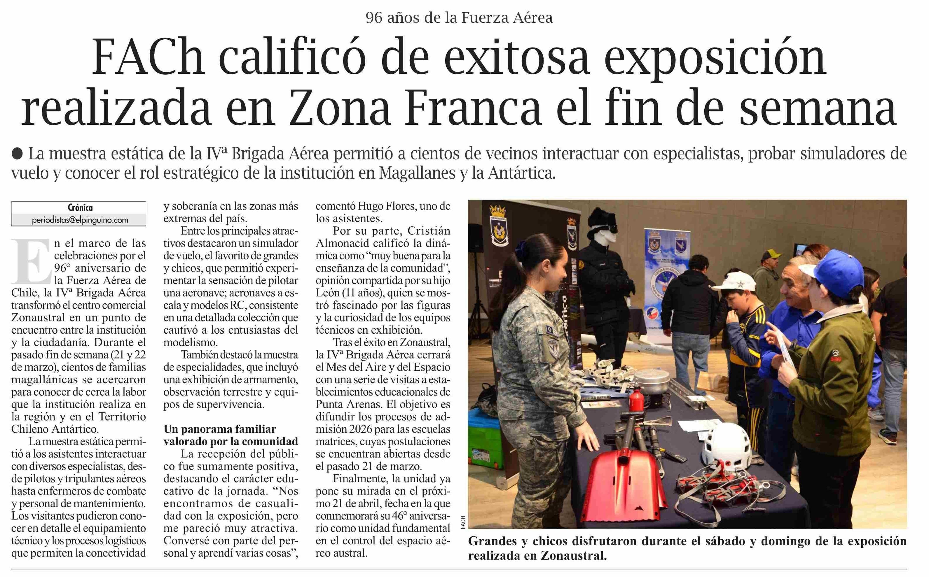 FACh calificó de exitosa exposición realizada en Zona Franca el fin de semana 24-03-2026 El Pingüino |