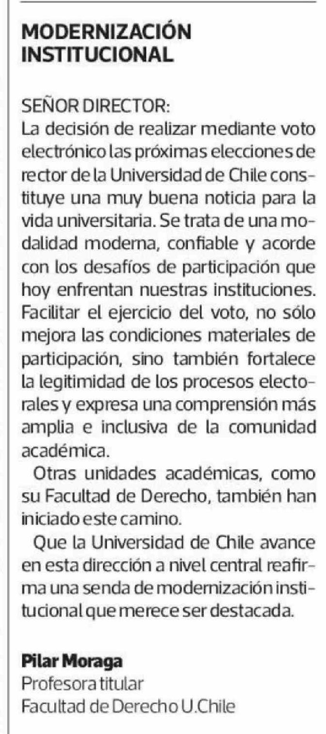 Cartas: MODERNIZACIÓN INSTITUCIONAL 25-04-2026 La Tercera |
