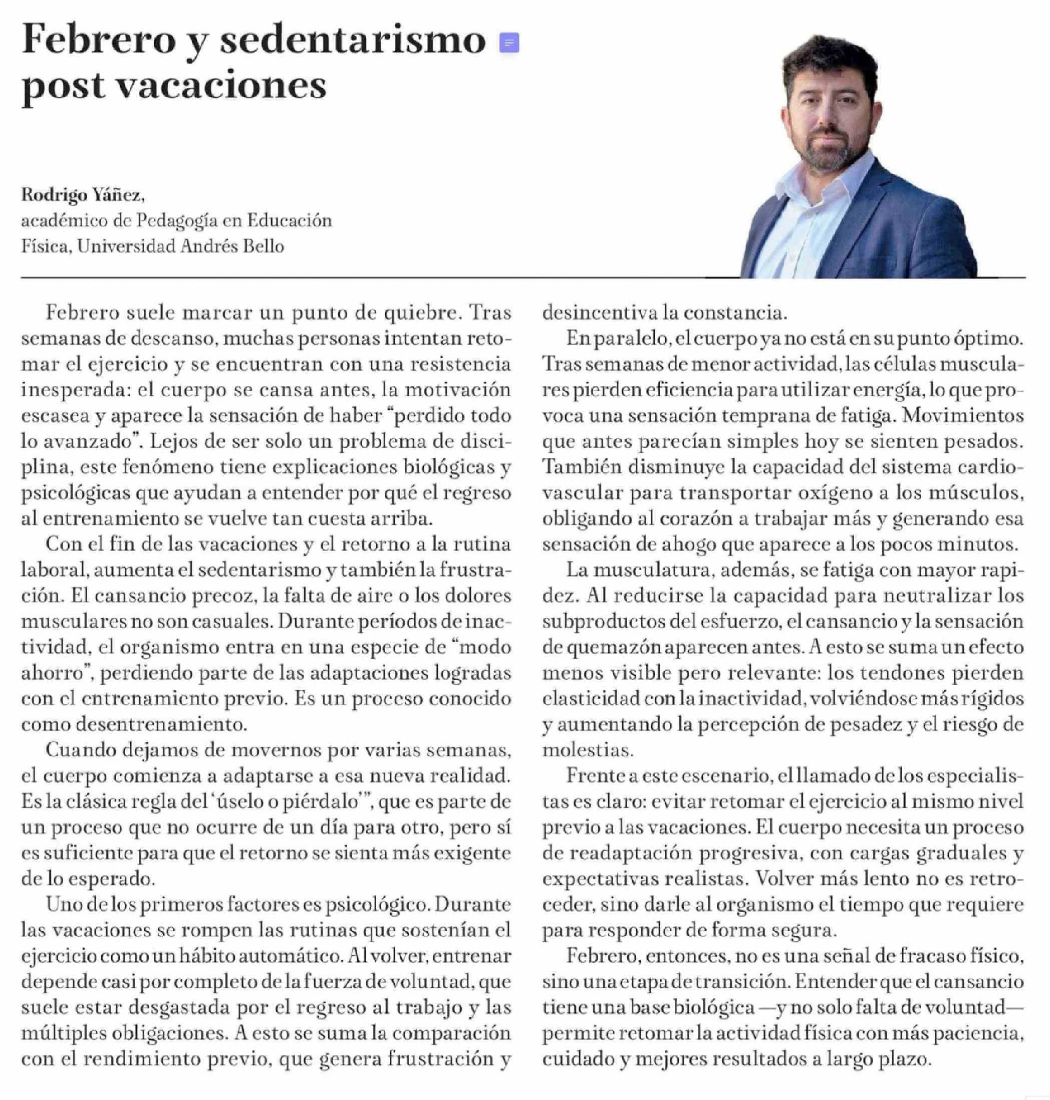 | Título: | Columnas de Opinión: Febrero y sedentarismo post vacaciones |