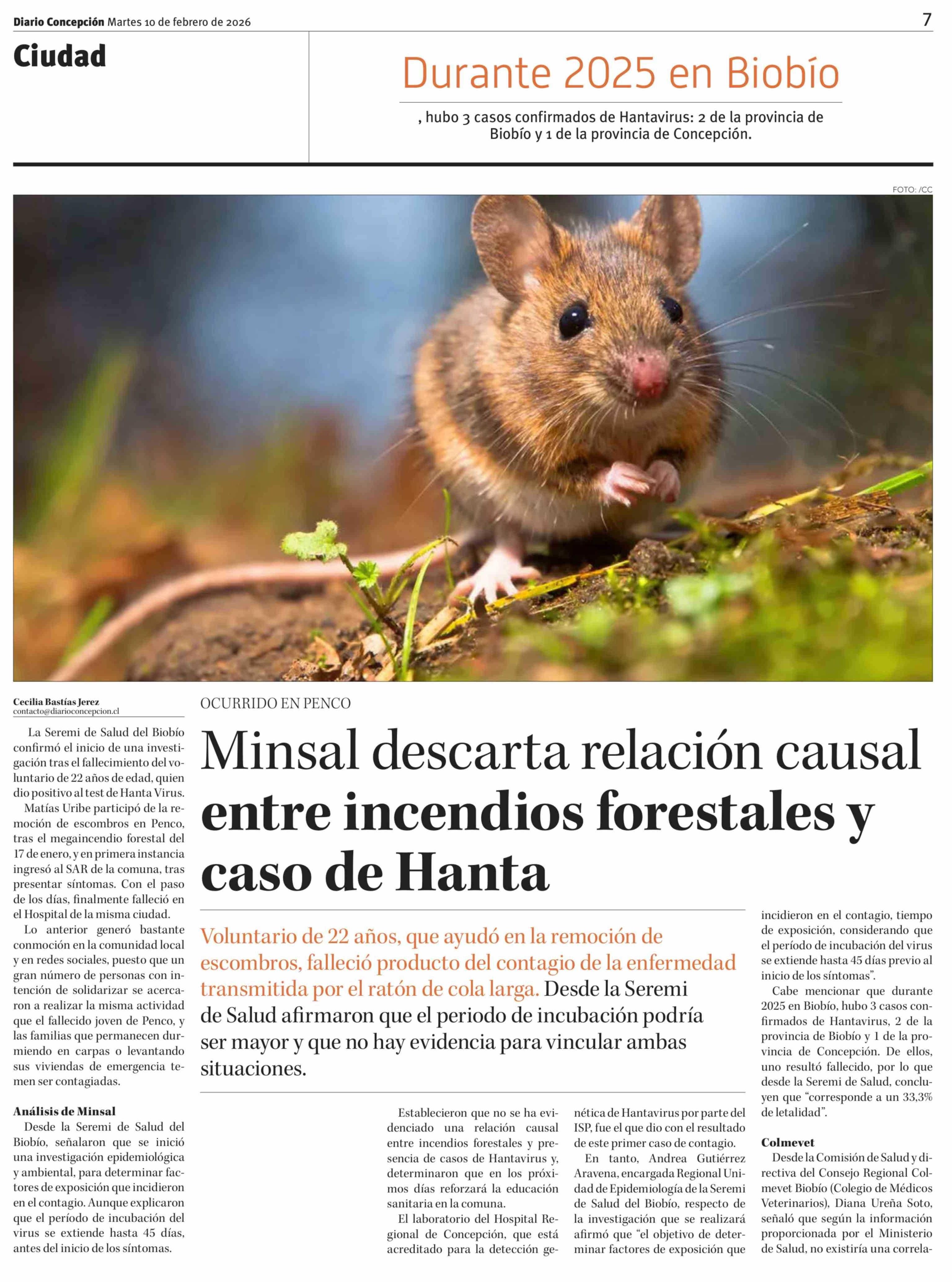 Título: Minsal descarta relación causal entre incendios forestales y caso de Hanta