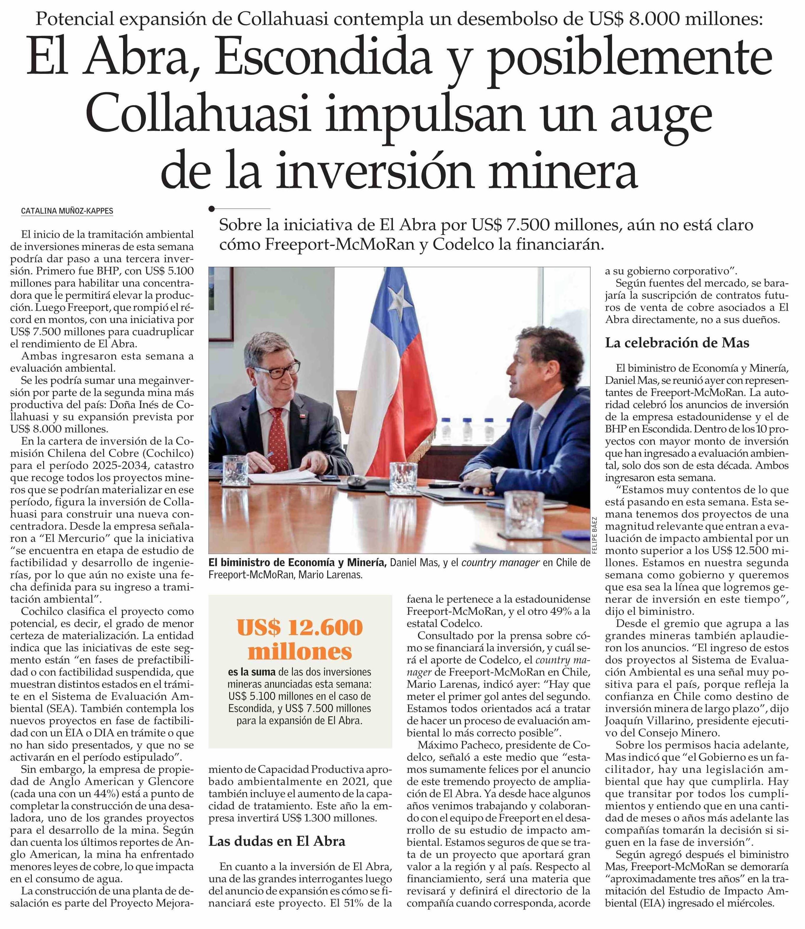 Título: El Abra, Escondida y posiblemente Collahuasi impulsan un auge de la inversión minera