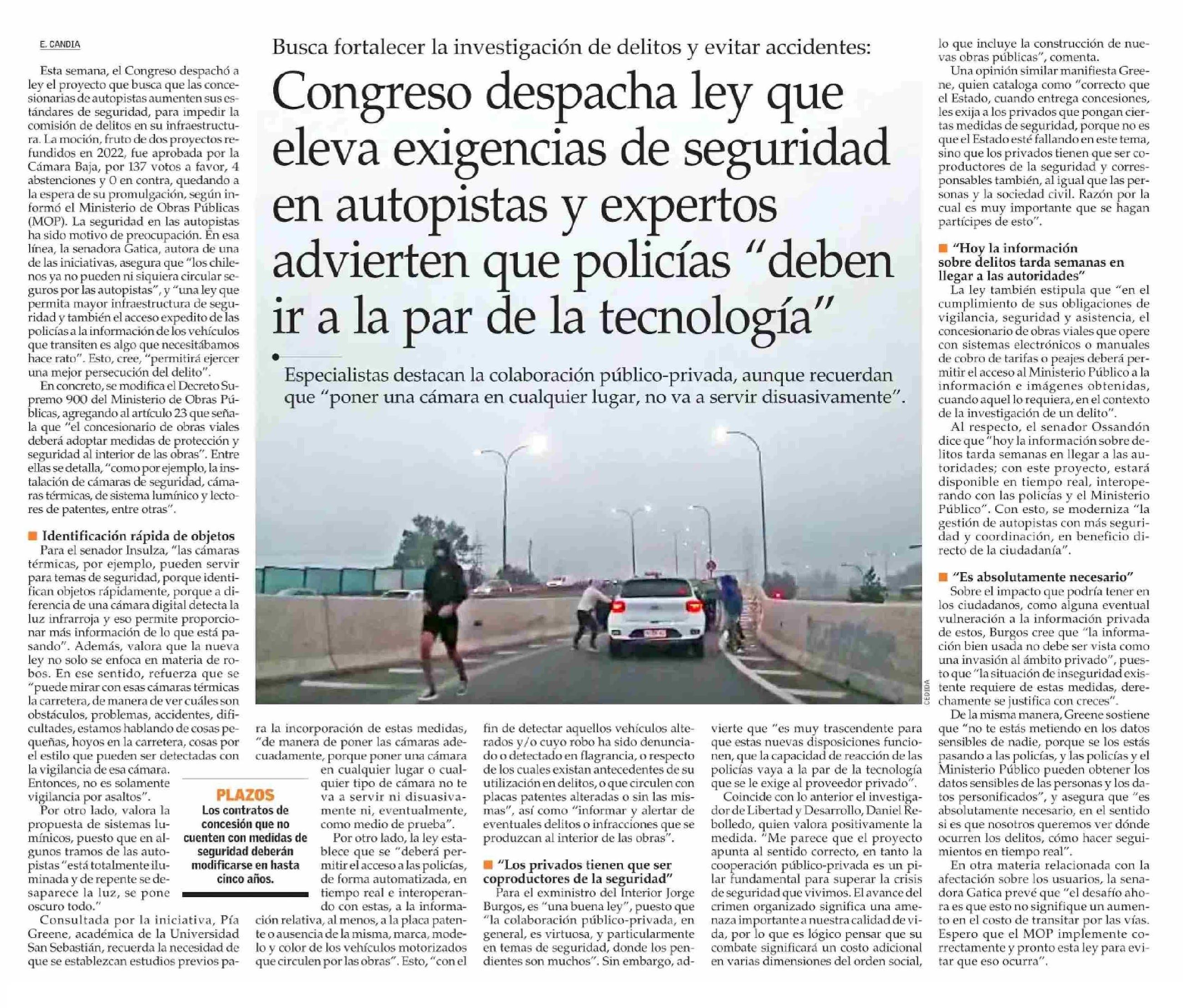 Congreso despacha ley que eleva exigencias de seguridad en autopistas y expertos advierten que policías “deben ira la par de la tecnología” 12-06-2025 El Mercurio |