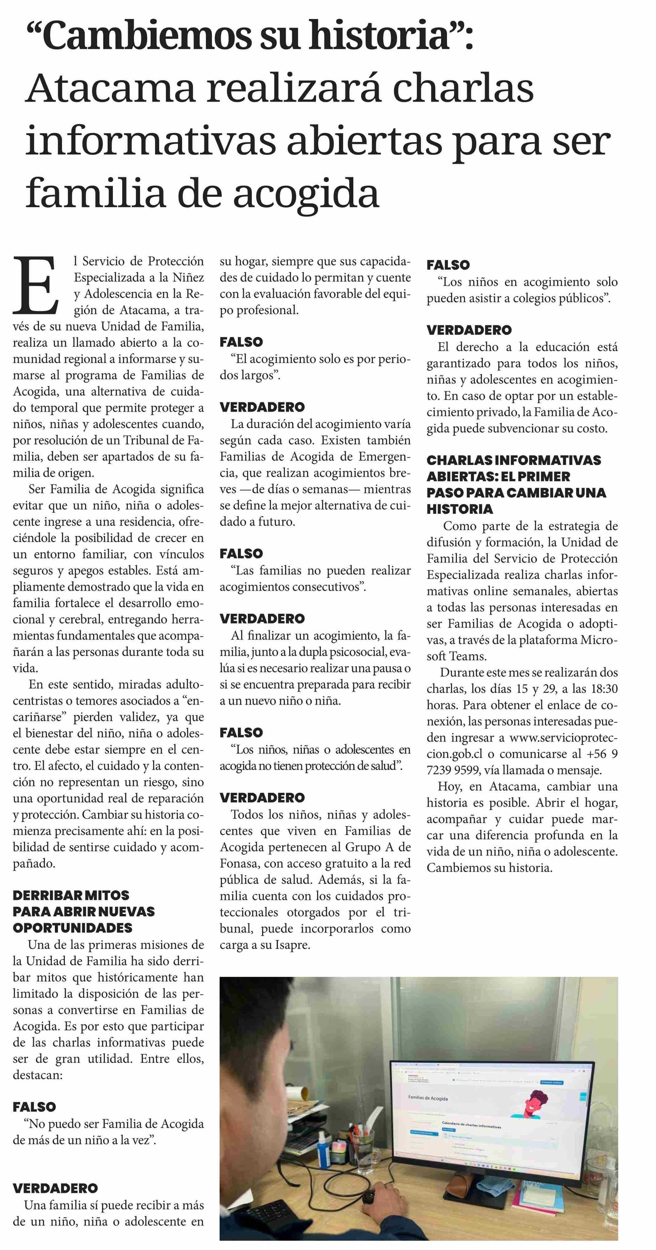 "Cambiemos su historia": Atacama realizará charlas informativas abiertas para ser familia de acogida 13-01-2026 Diario Chañarcillo |