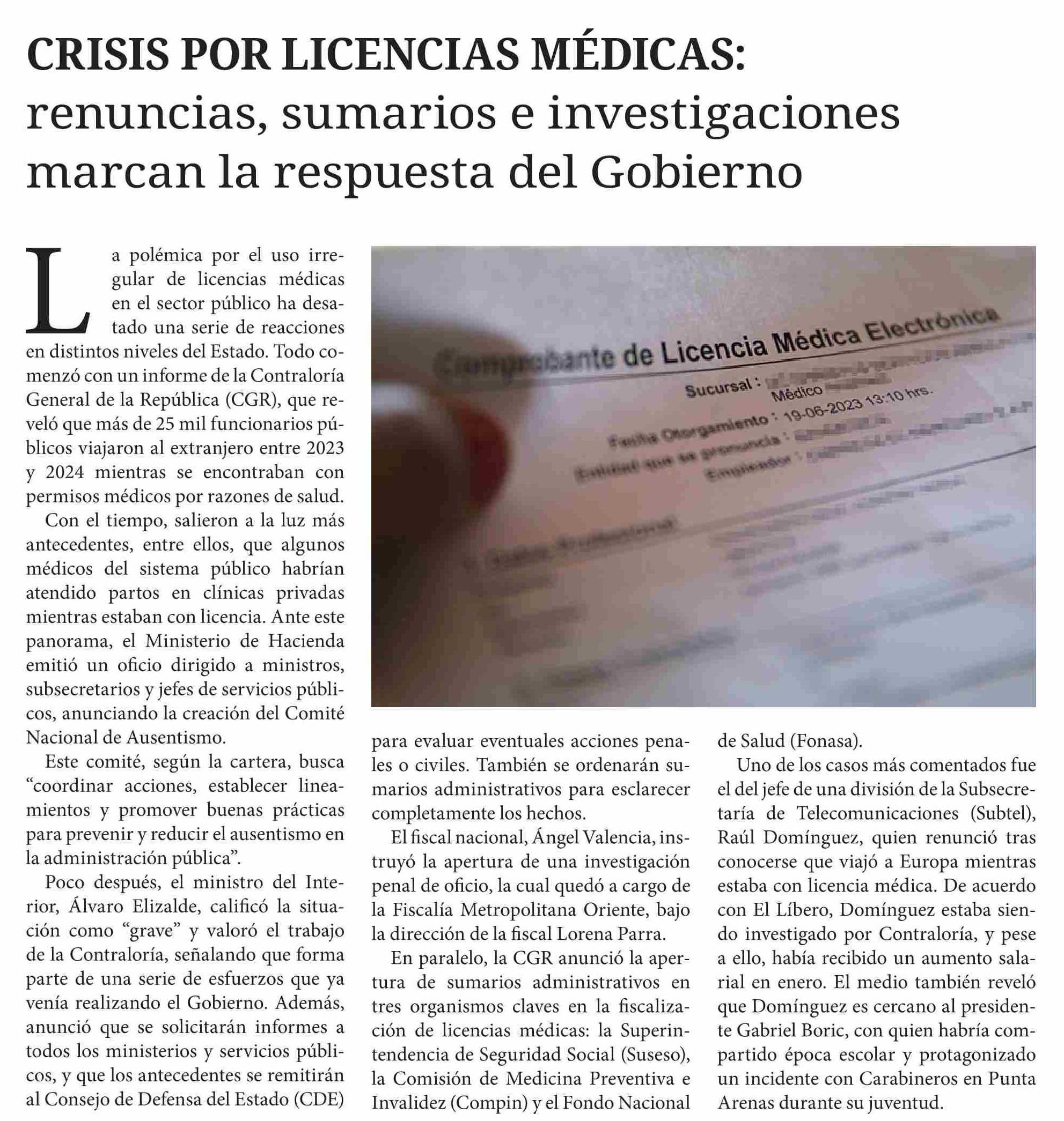 CRISIS POR LICENCIAS MÉDICAS: renuncias, sumarios e investigaciones marcan la respuesta del Gobierno 26-05-2025 Diario Chañarcillo |
