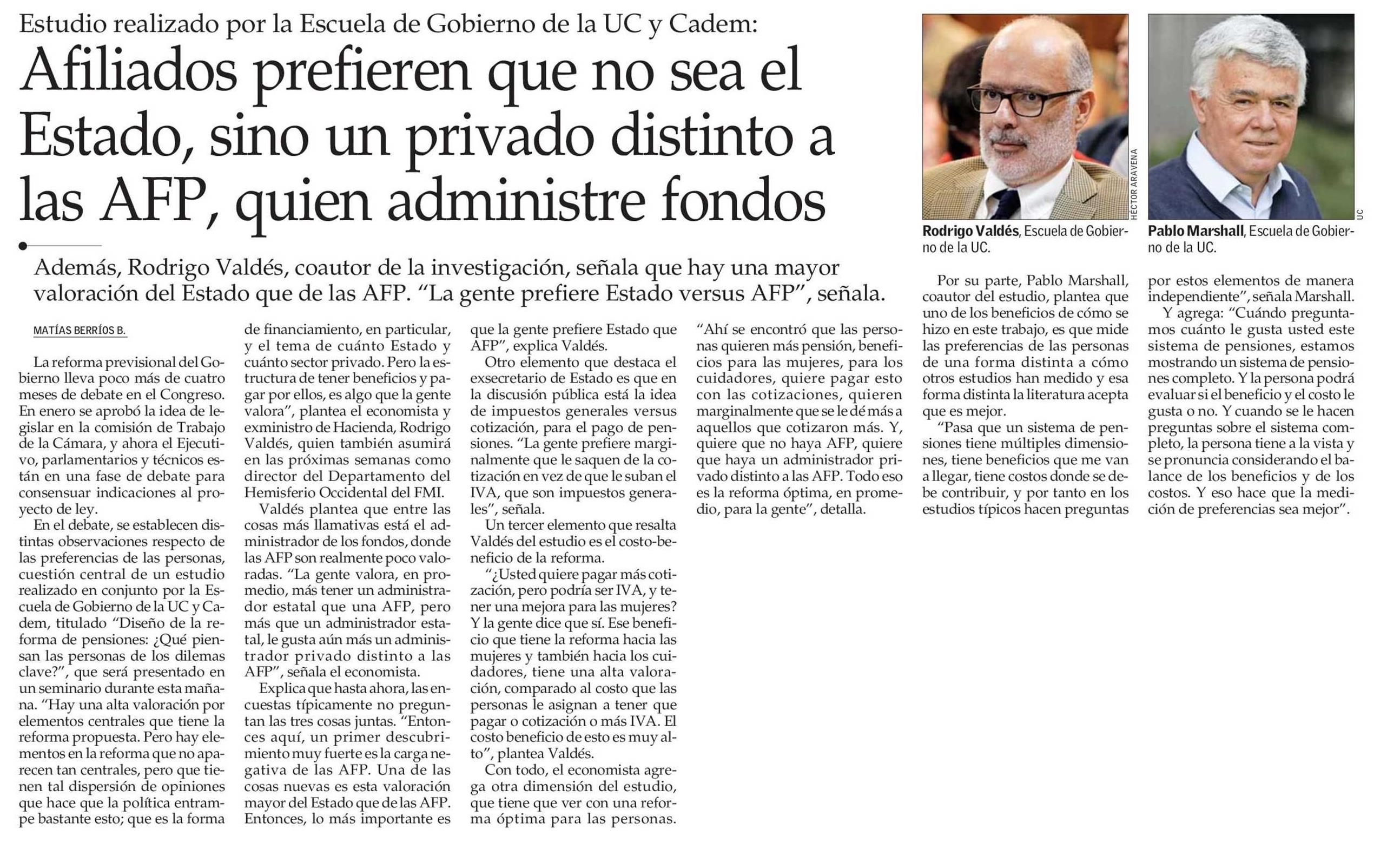 Afiliados prefieren que no sea el Estado, sino un privado distinto a las AFP, quien administre fondos 23-03-2023 El Mercurio |