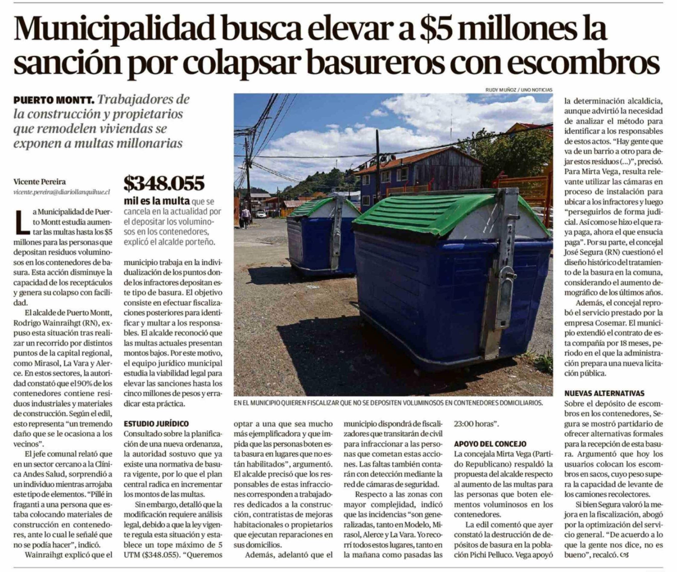 Título: Municipalidad busca elevar a $5 millones la sanción por colapsar basureros con escombros