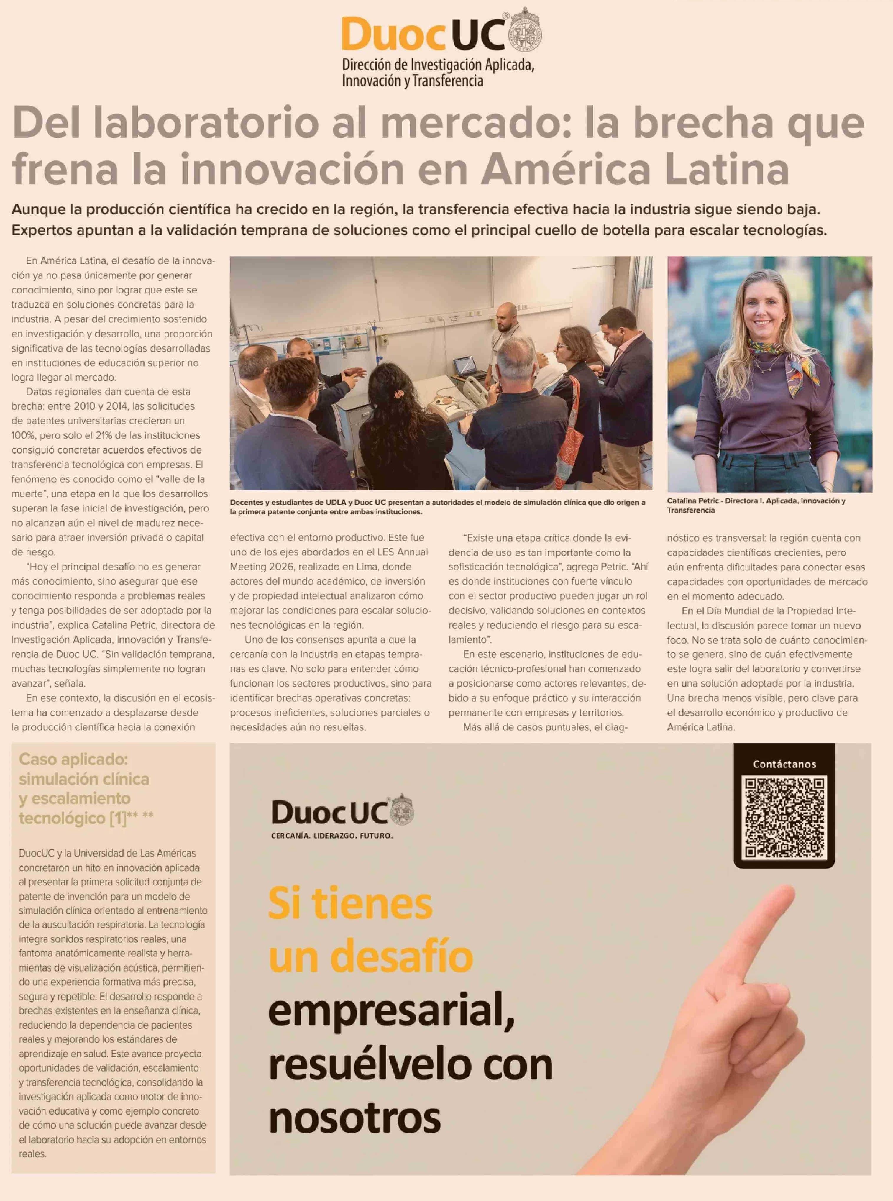Del laboratorio al mercado: la brecha que frena la innovación en América Latina 21-04-2026 Diario Financiero |