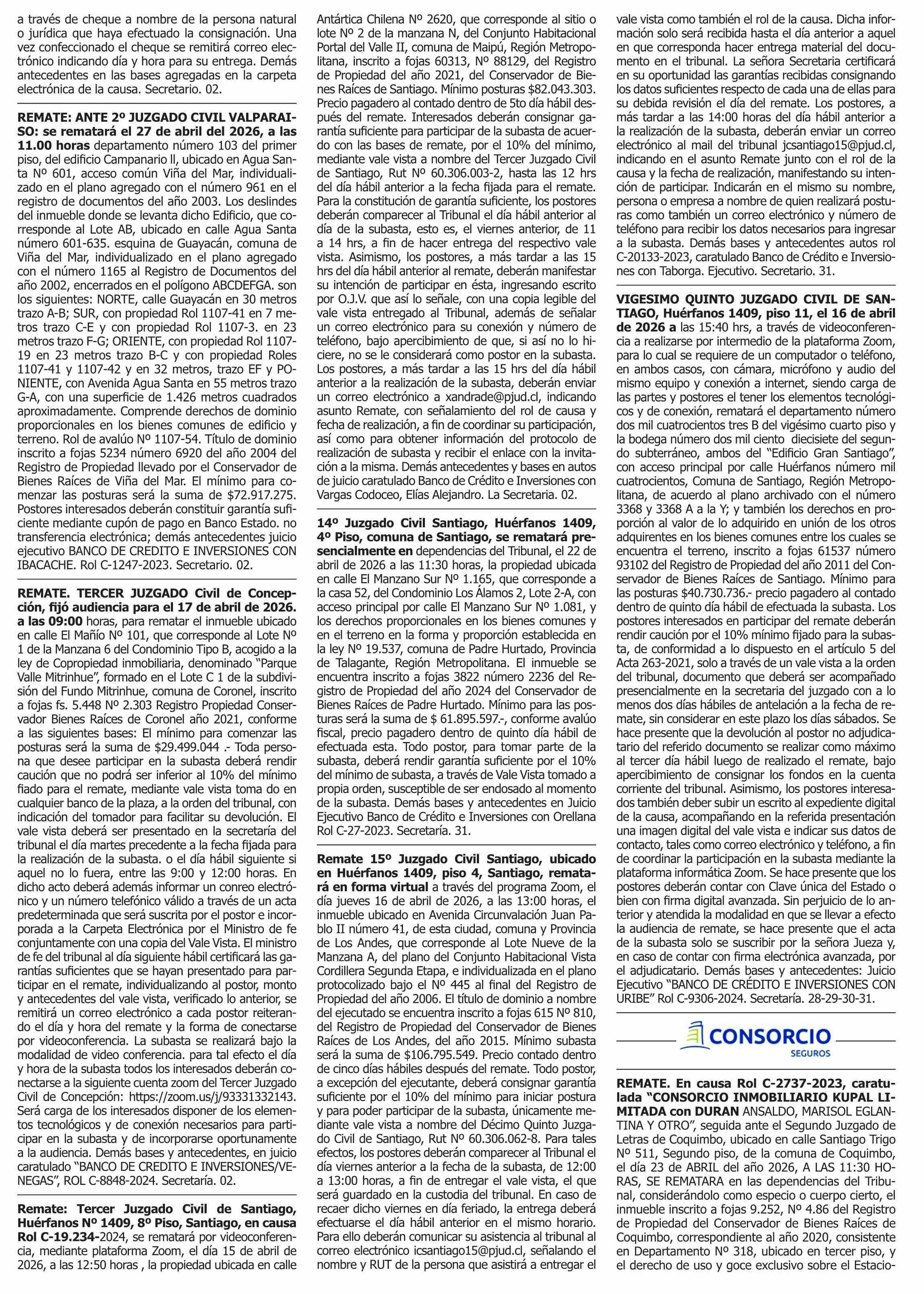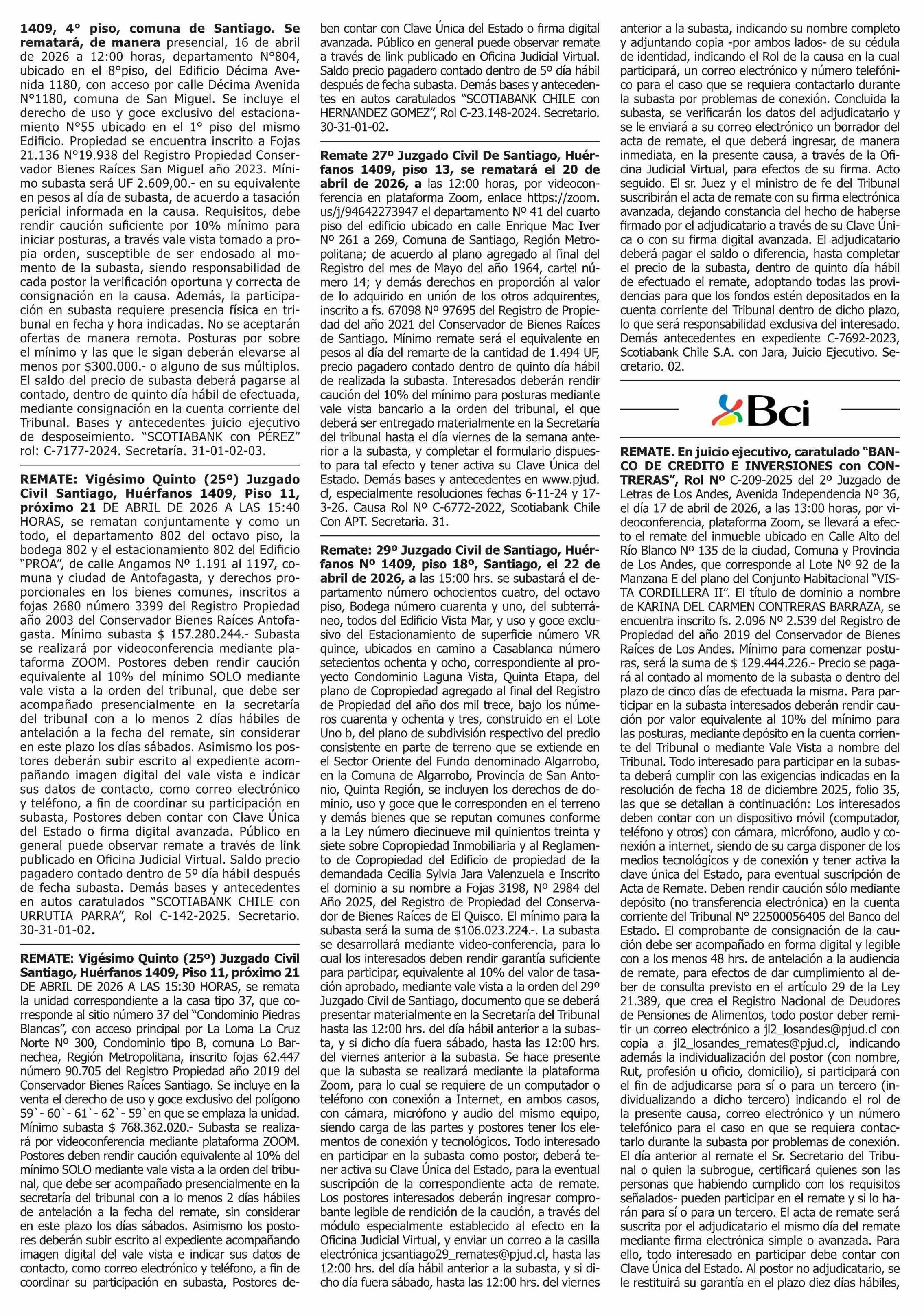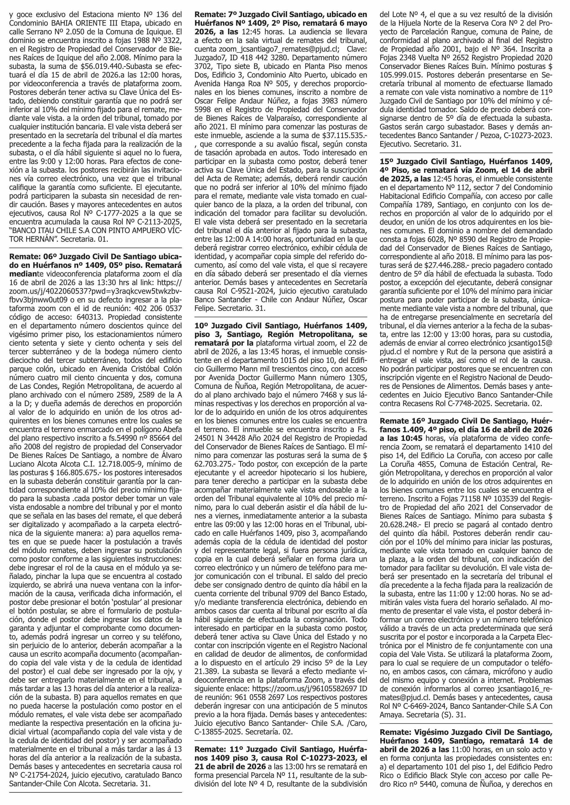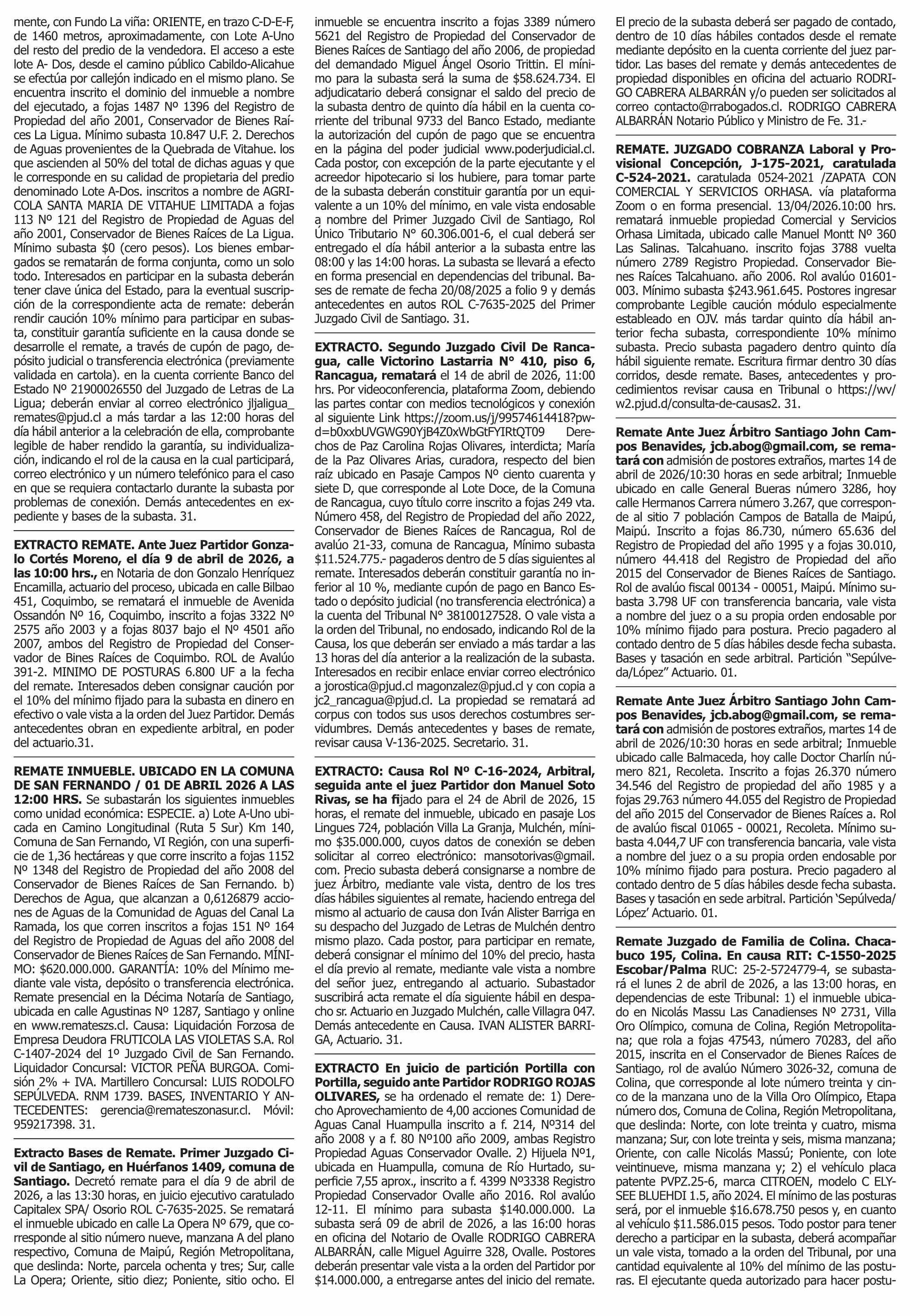 | Fecha: | 31-03-2026 | Sector: | Remates | Región: | Región Metropolitana de Santiago |