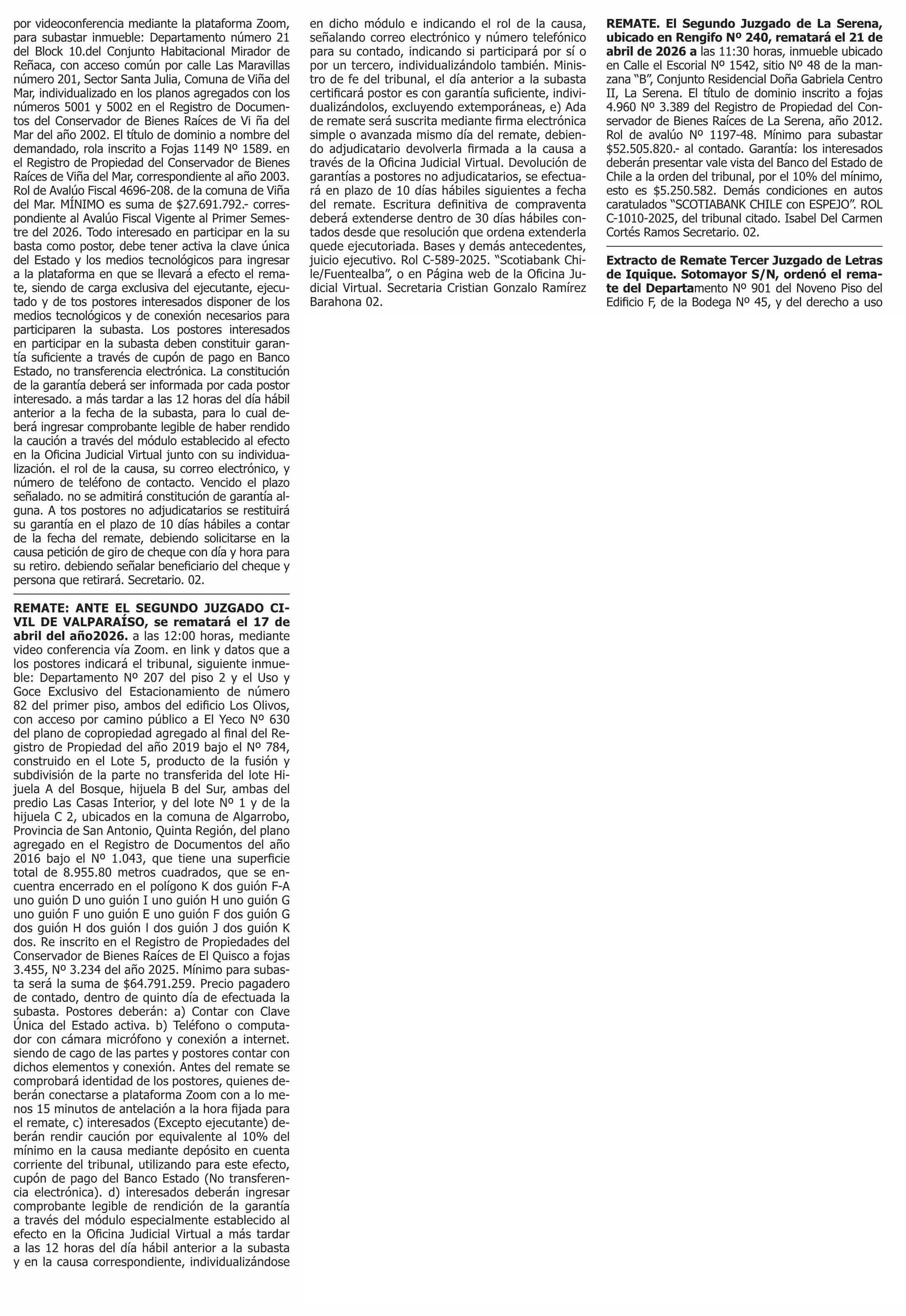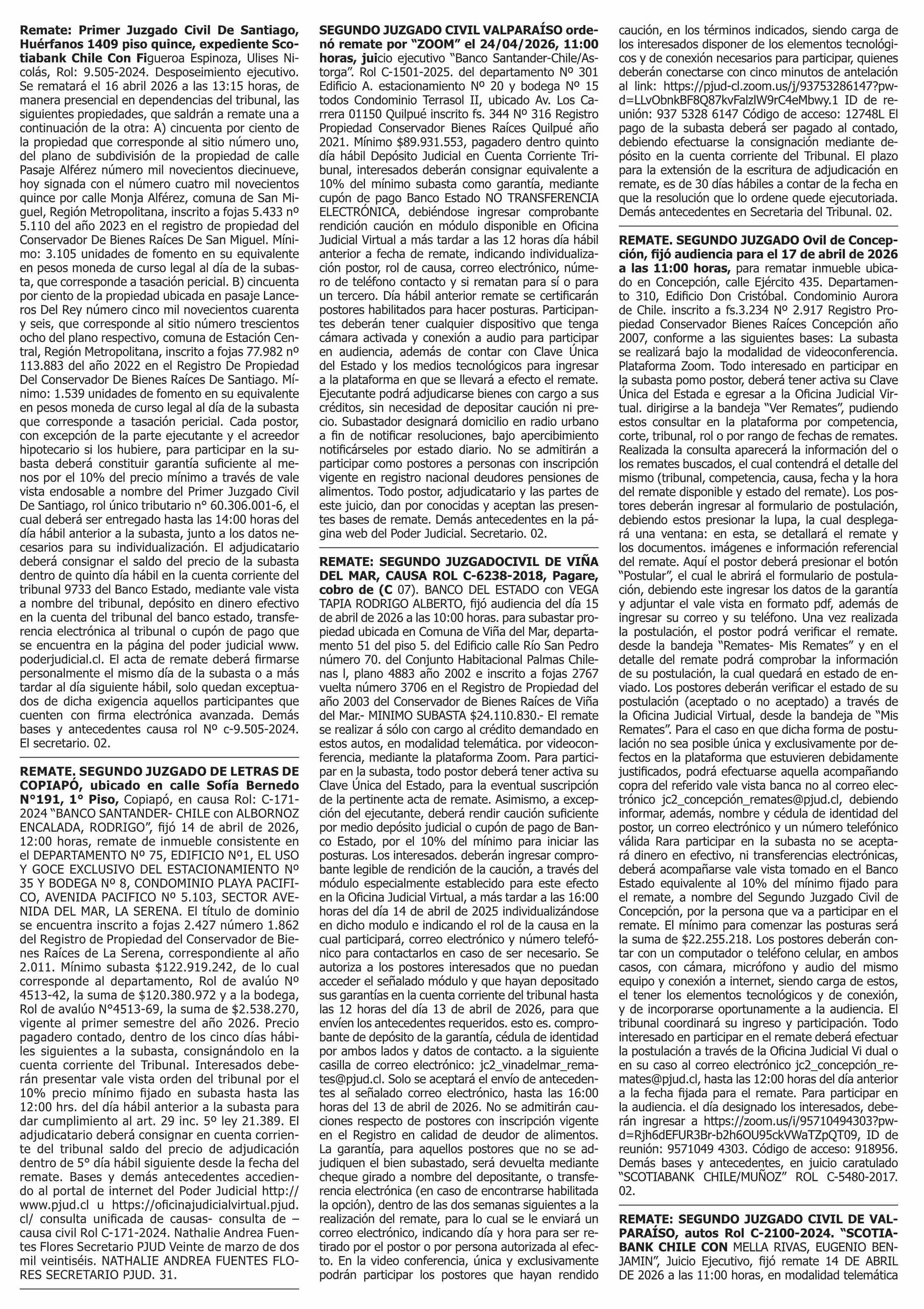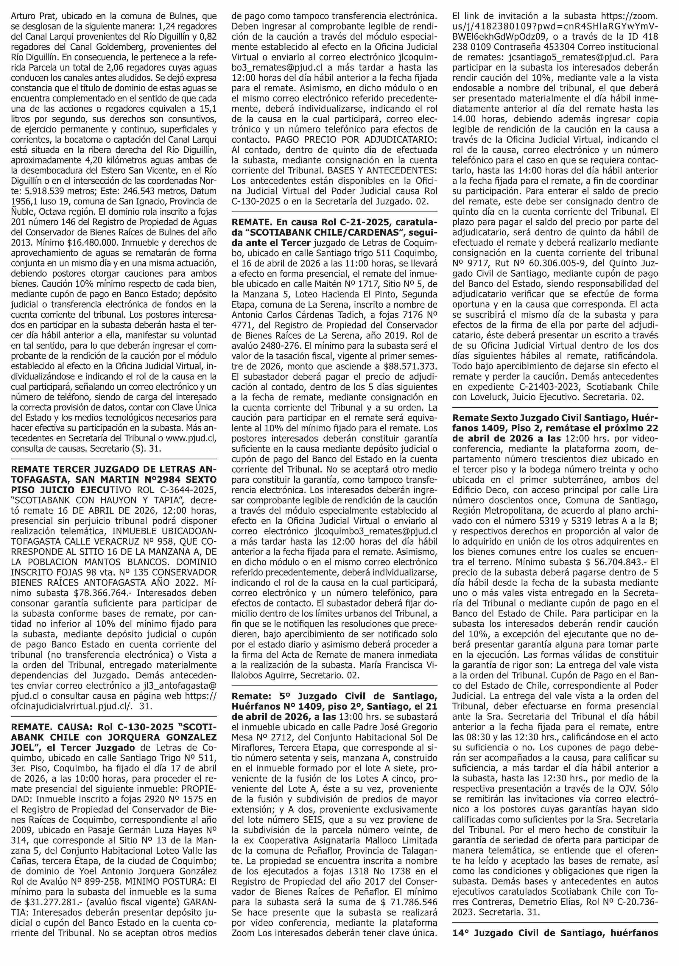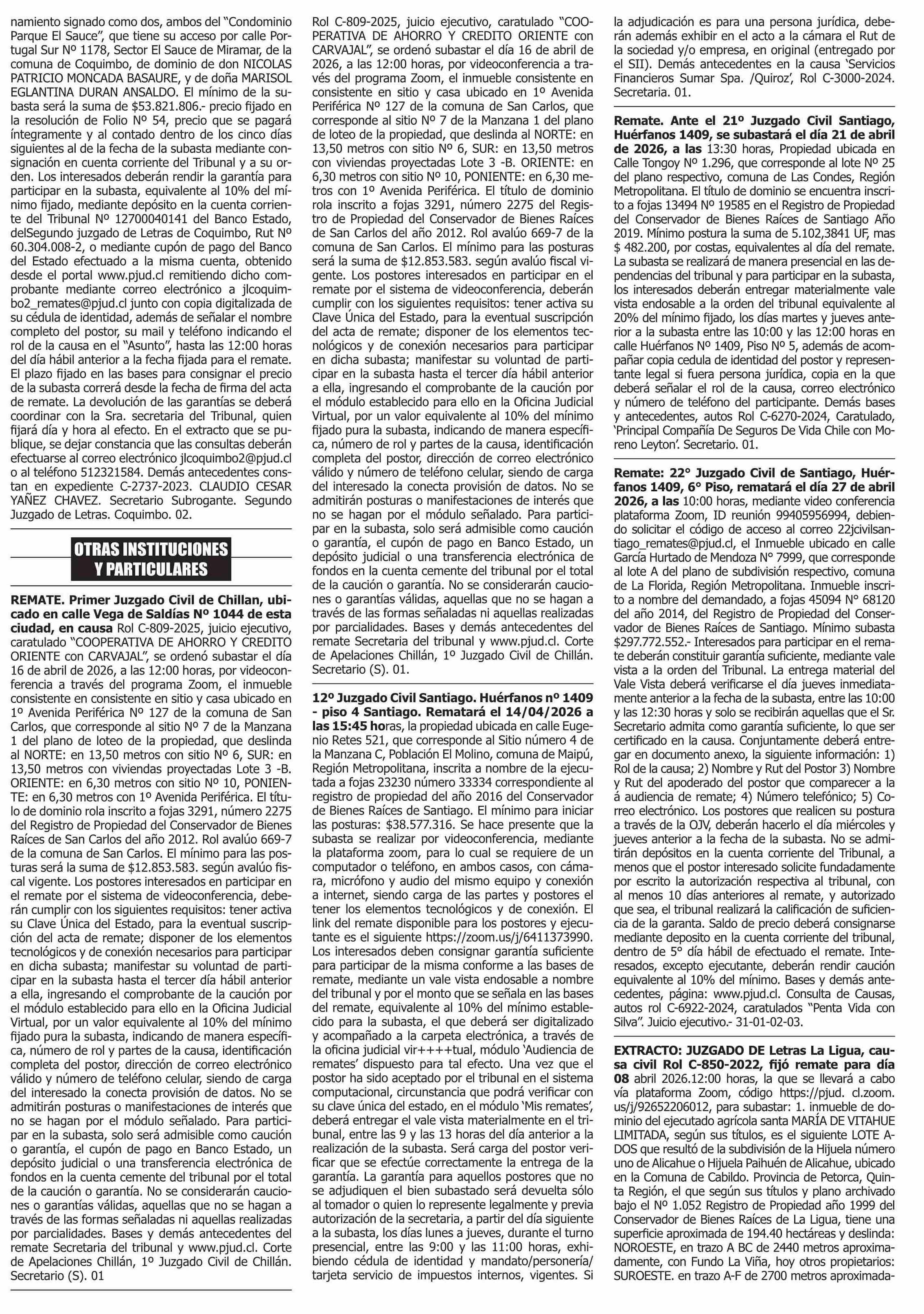 | Fecha: | 31-03-2026 | Sector: | Remates | Región: | Región Metropolitana de Santiago |
